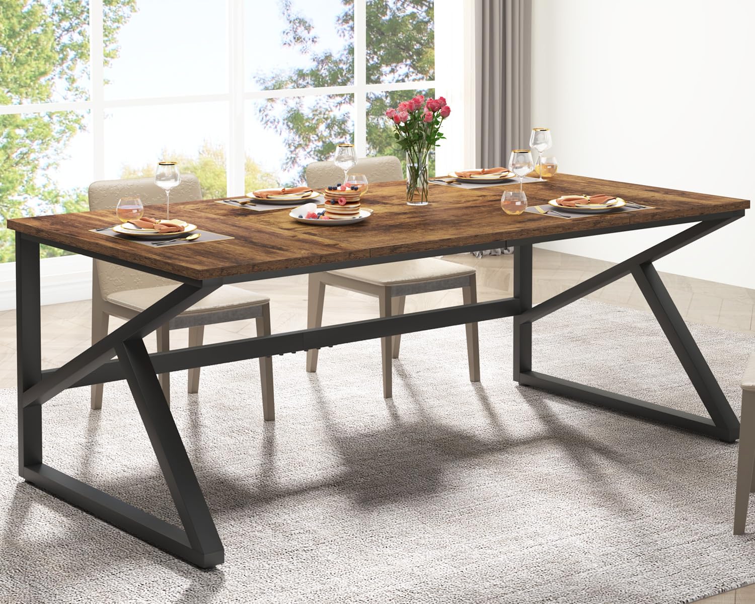 - Spacious Desktop and Legroom: With overall dimensions of 31.5"D x 70.8"W x 29.5"H, this large wood desk offers a vast surface area that can comfortably hold multiple monitors, PCs, laptops, printers, files, books, lamps, and other office essentials. The expansive desk area ensures you have everything you need at your fingertips, enhancing your productivity. The two K-shaped metal legs for this rustic long computer desk provide an open design that offers ample legroom, ensuring comfort even during long hours of use.