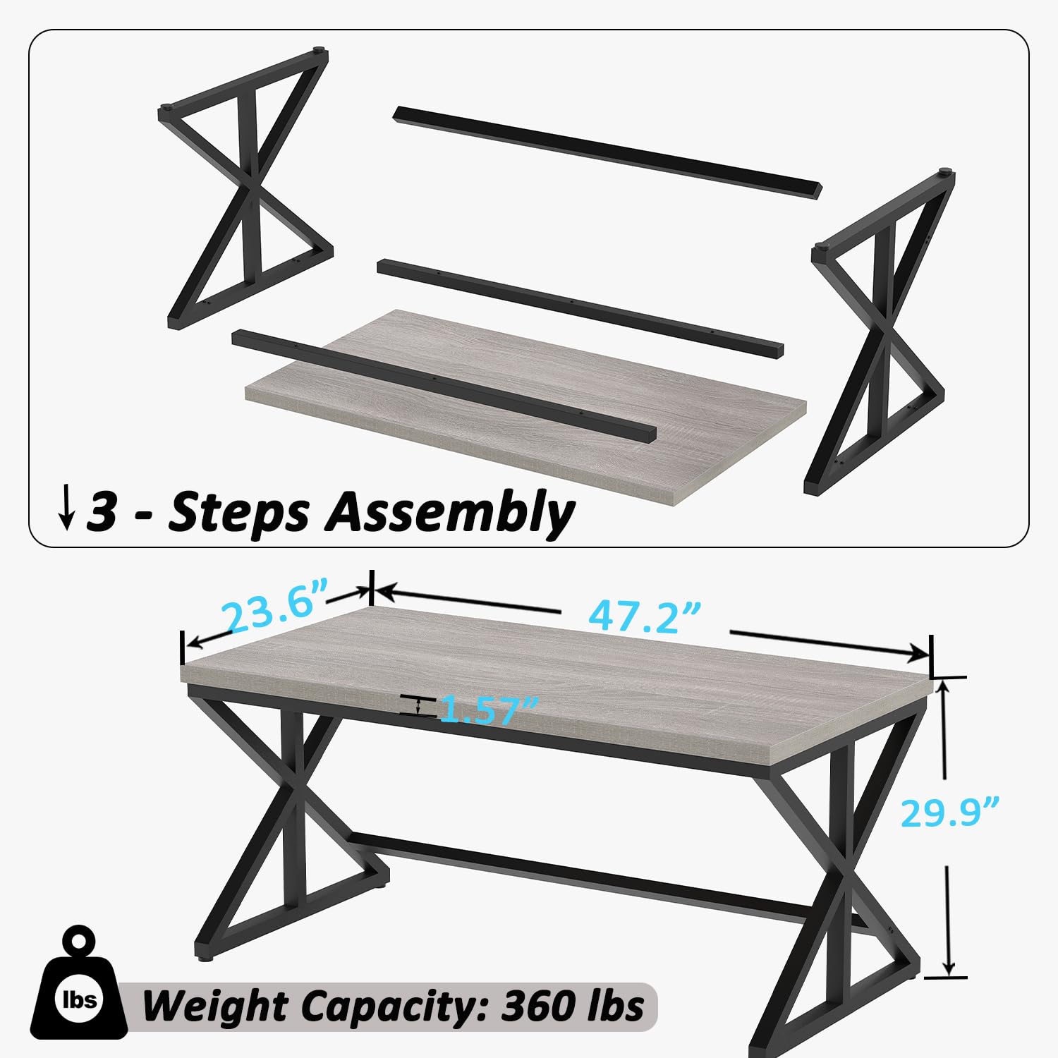 IBF Computer Desk, Industrial PC Laptop Office Desk, Farmhouse Gaming Desk with Spacious Desktop, Rustic Wood Metal Writing Study Work Table for Home Office Bedroom, 47 Inch, Grey Oak