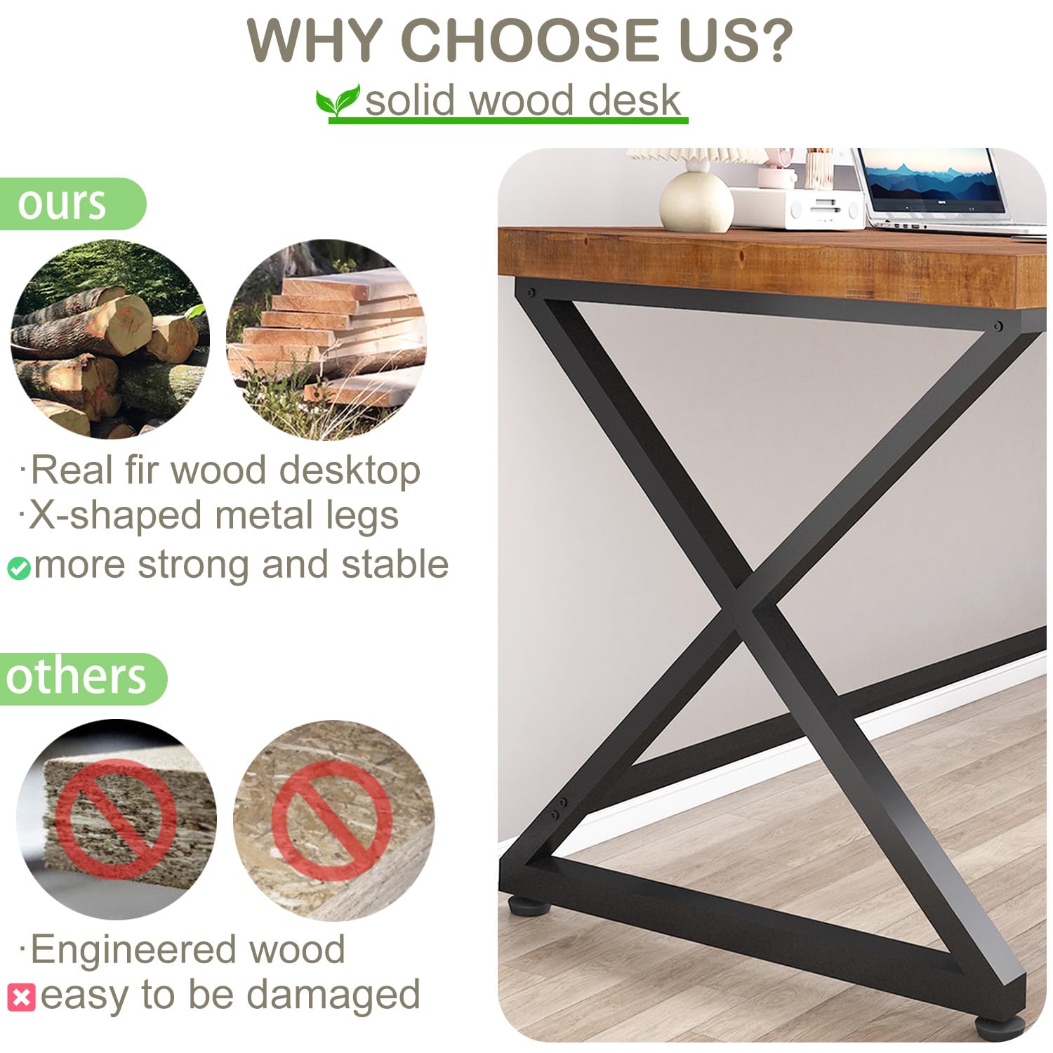 - Sturdy X-shaped Metal Legs: The Minimalist solid wood desk legs are designed with X-shaped metal to increase stability and load-bearing capacity. The robust and scientific structure can support weights of up to 300 pounds.The perfect combination of metal and natural wood not only enhances the natural wood desk’s sturdiness but also gives this wooden desk a distinctive modern industrial look.