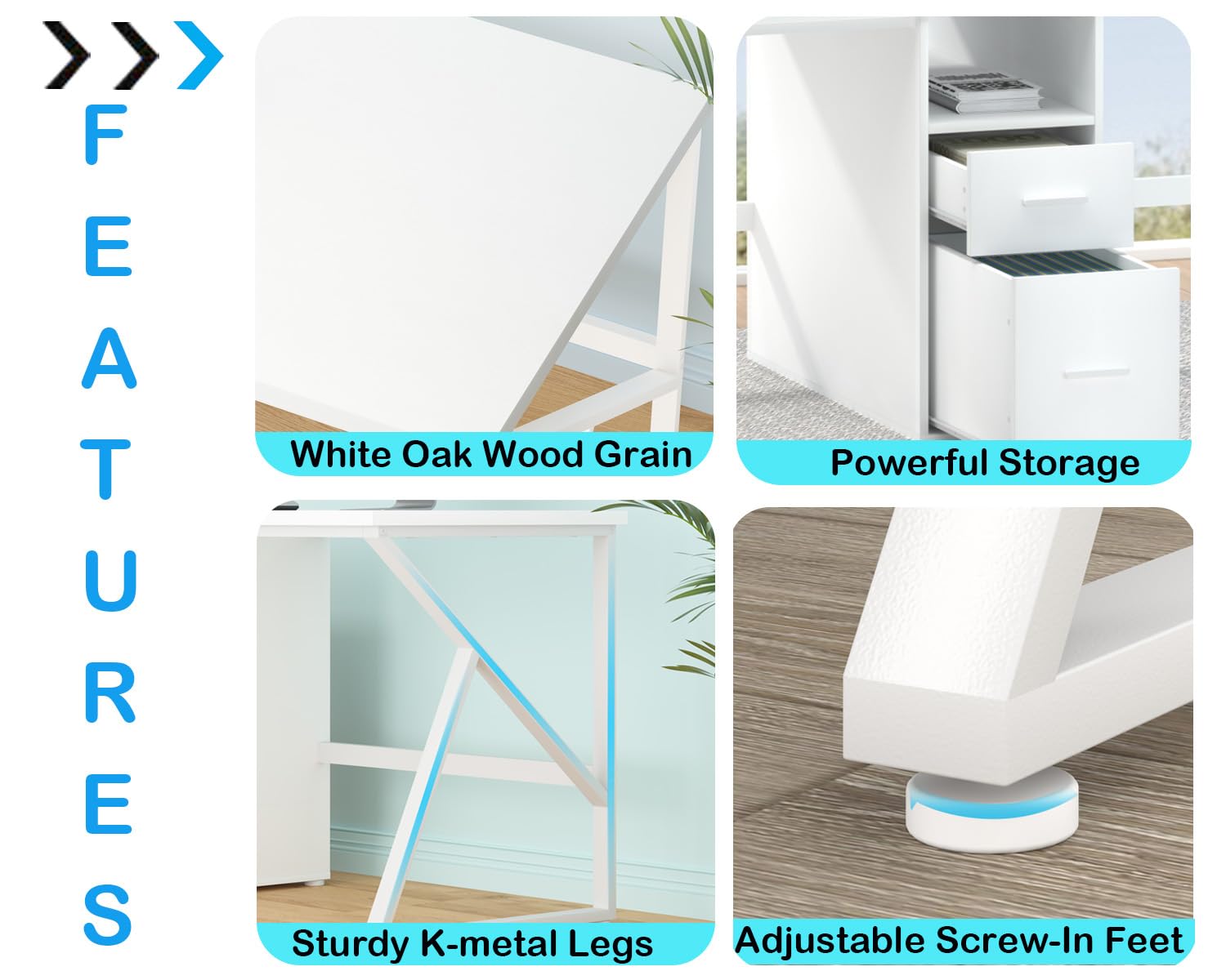 - [Ample Storage, Stylish Double Desk] - Our two-person desk boasts a large surface with storage shelves and file drawers, offering ample space for books, laptops, desktop PCs, and office accessories. The versatile storage shelves accommodate stationery, documents, books, files, plants, photos, and decor. Perfect for various purposes like a computer desk, writing desk, office desk, study table, meeting table, or exhibition table.