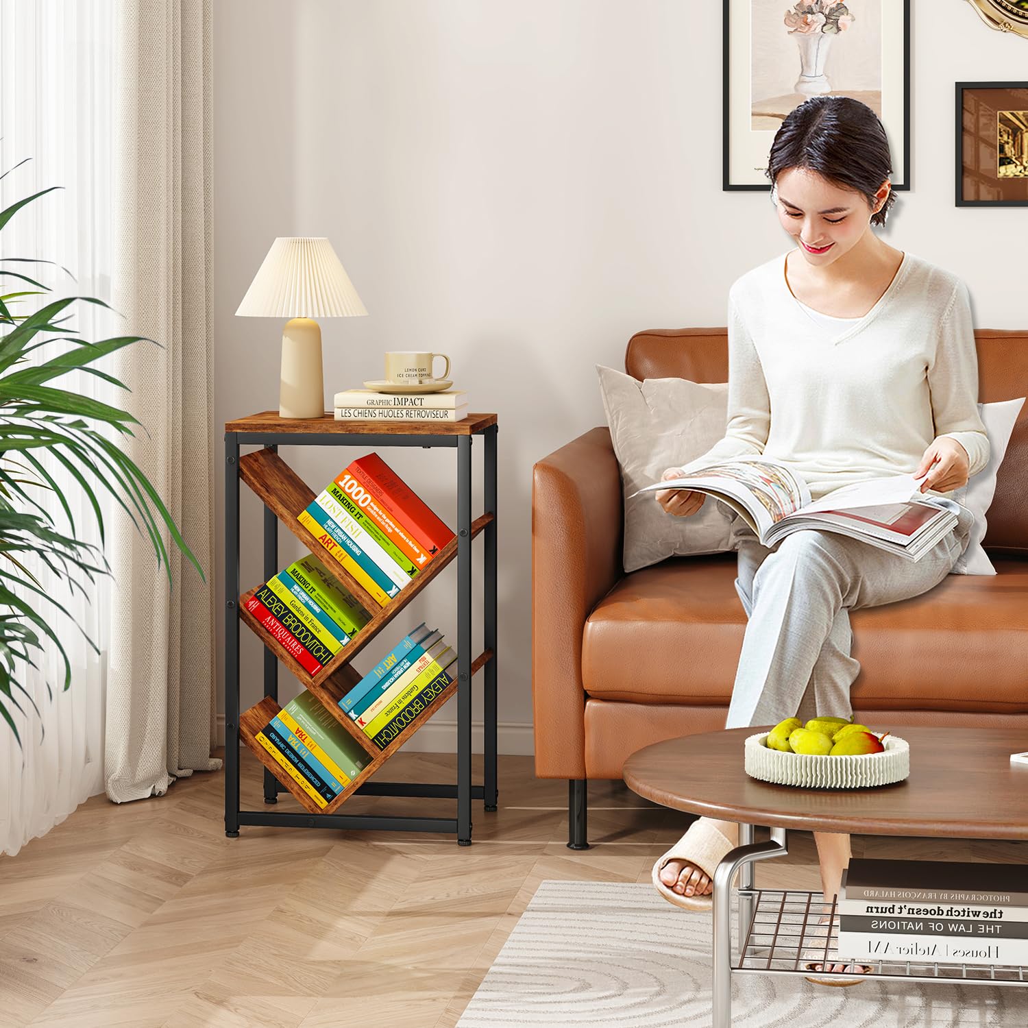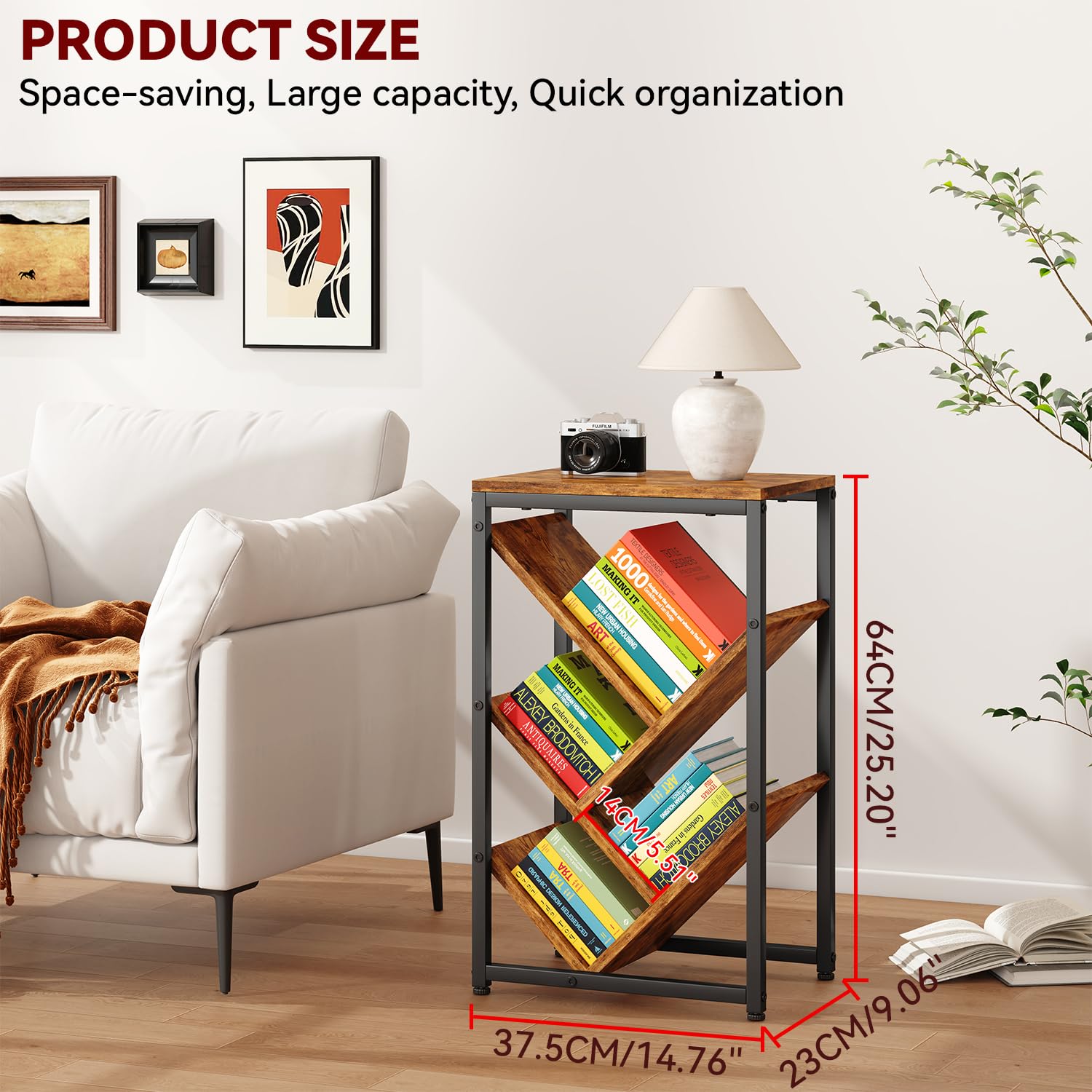 - MULTIFUNCTIONAL BOOKSHELF: It can be used not only as a desktop bookshelf, but also as a side table with top panel for coffee, photos, photo albums and a lamp. With a small footprint, this corner bookshelf is perfect for use in the living room, office, bedroom, and small corners.