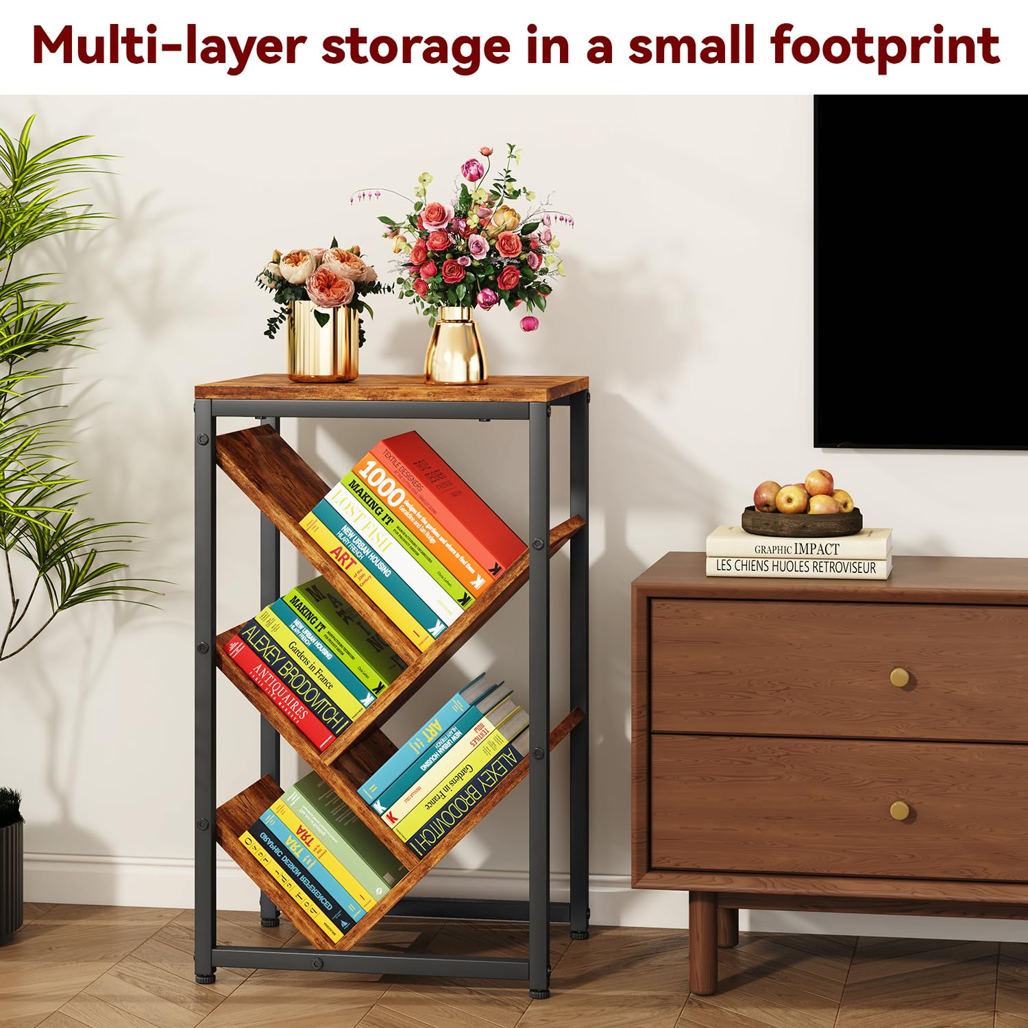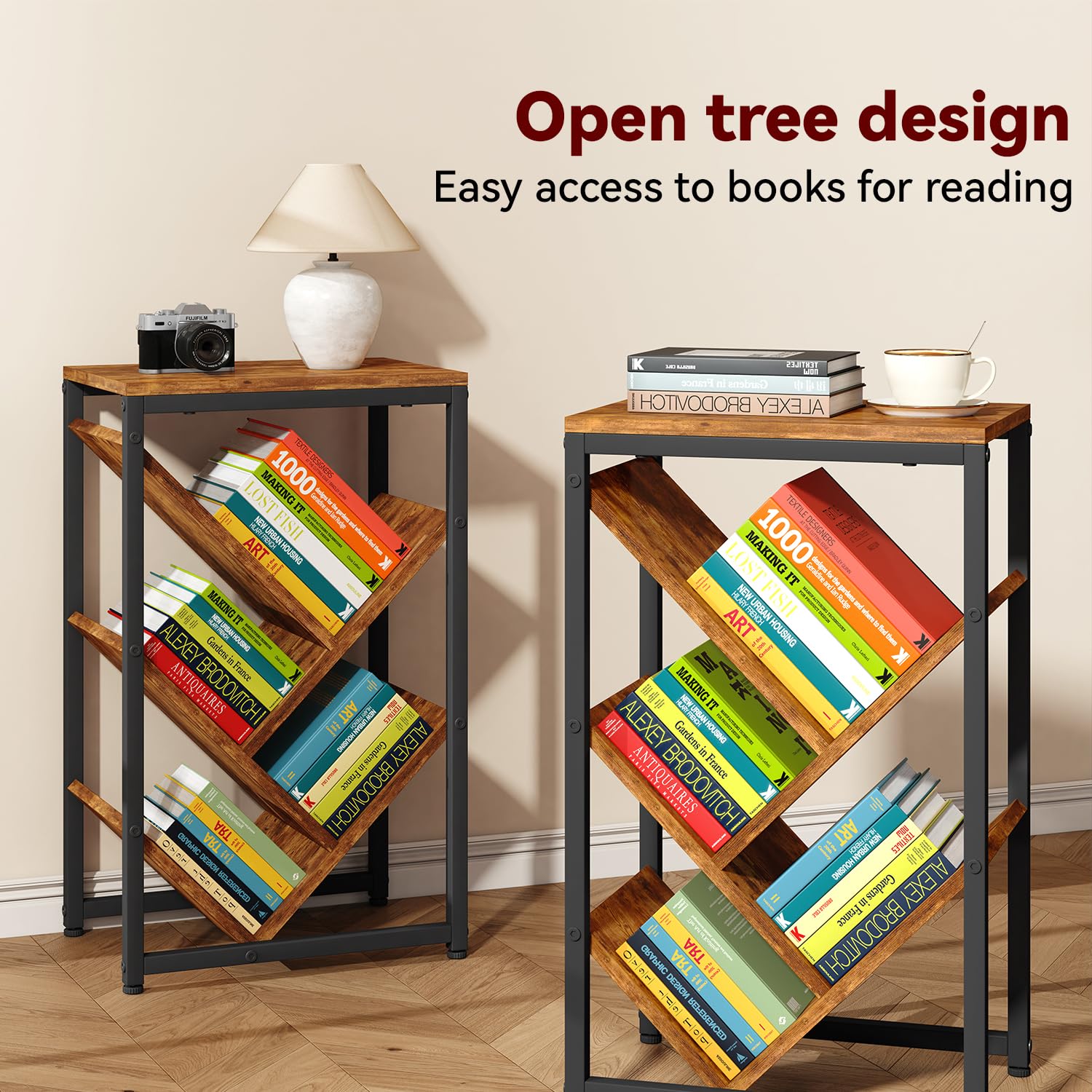 IBUYKE 5 Tier Tree Bookshelf, Small Desktop Bookshelf with Storage Organizer,for Books/CDs/Movies,Desk Display Bookcase for Bedroom Living Room,Rustic Brown,TBC003H