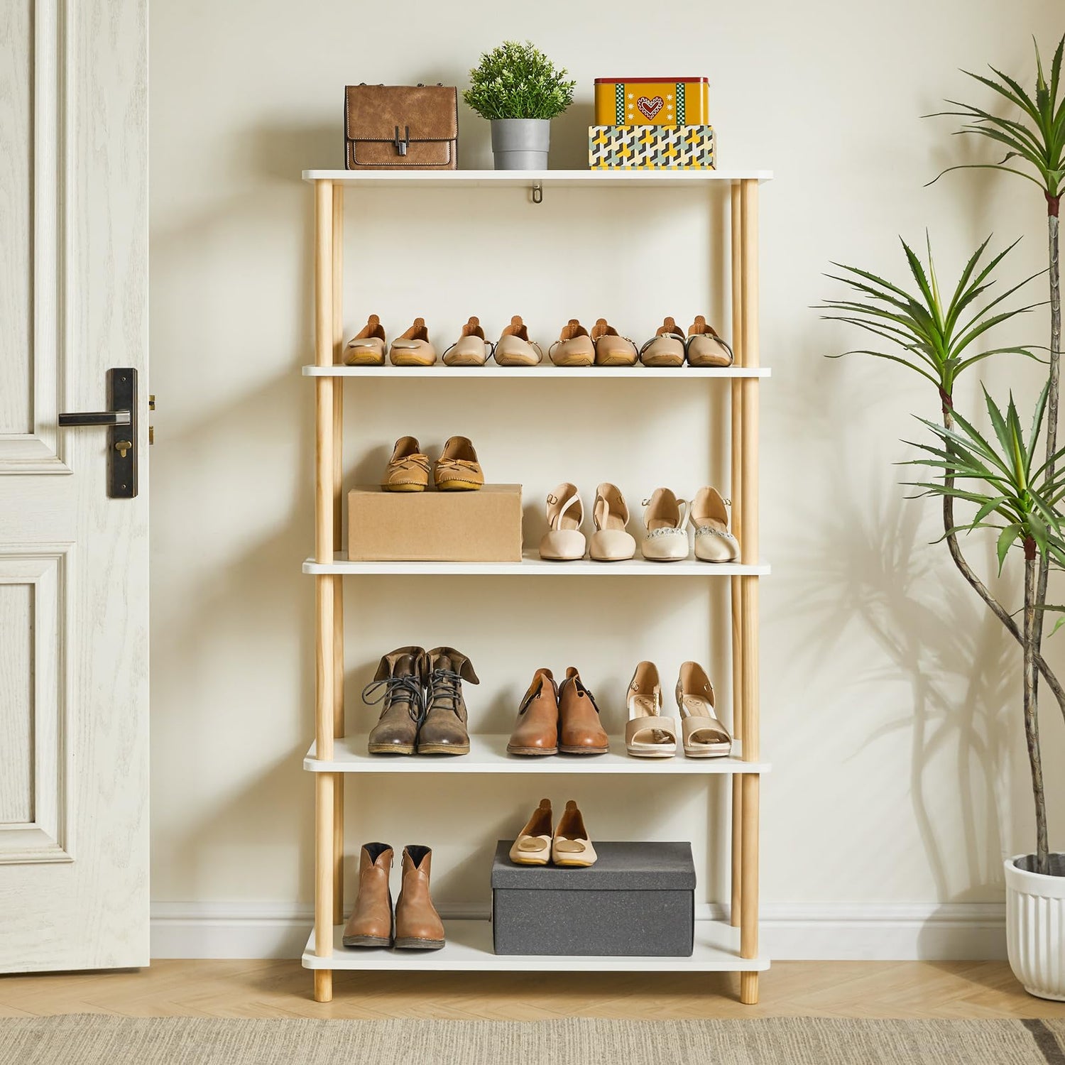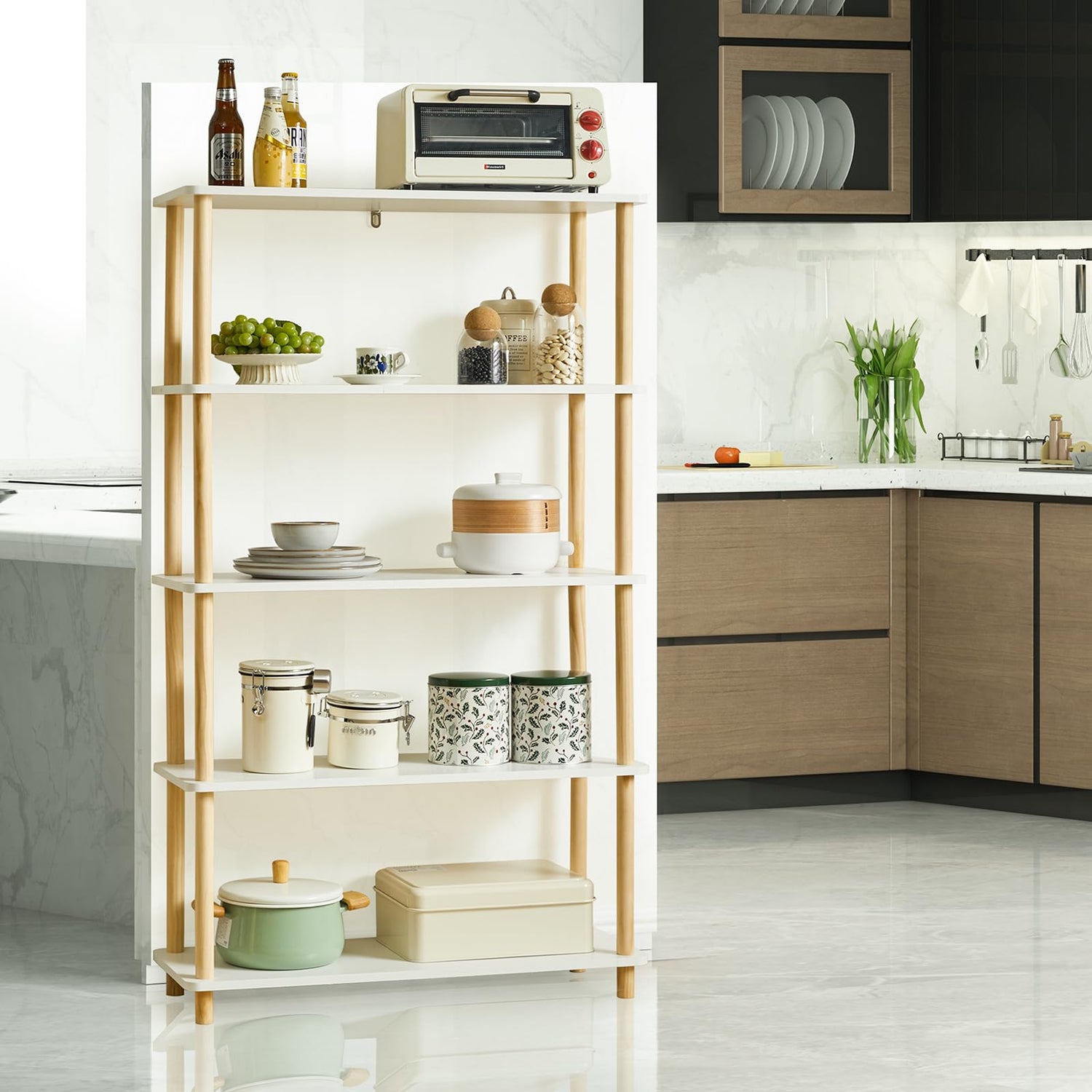 IBUYKE Modern 5-Tier Freestanding Wooden Bookcase - Stylish Multi-Purpose Organiser in White