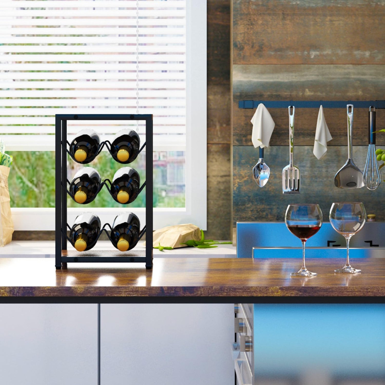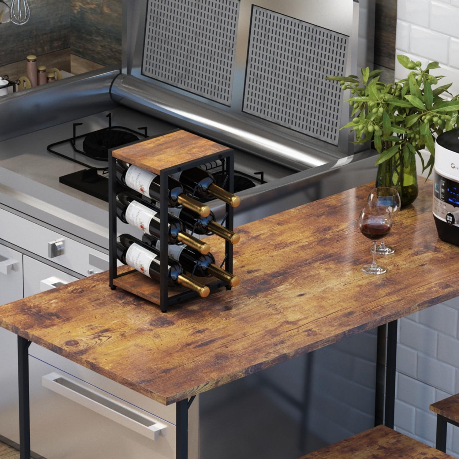 IBUYKE Rustic Wood 6 Bottles Wine Rack for Countertop,3 Tier Free Standing Wine Rack,Wine Bottle Holder Stand Organizer for Home Decor Bar,Cabinet, Pantry,Countertop TMJ901H