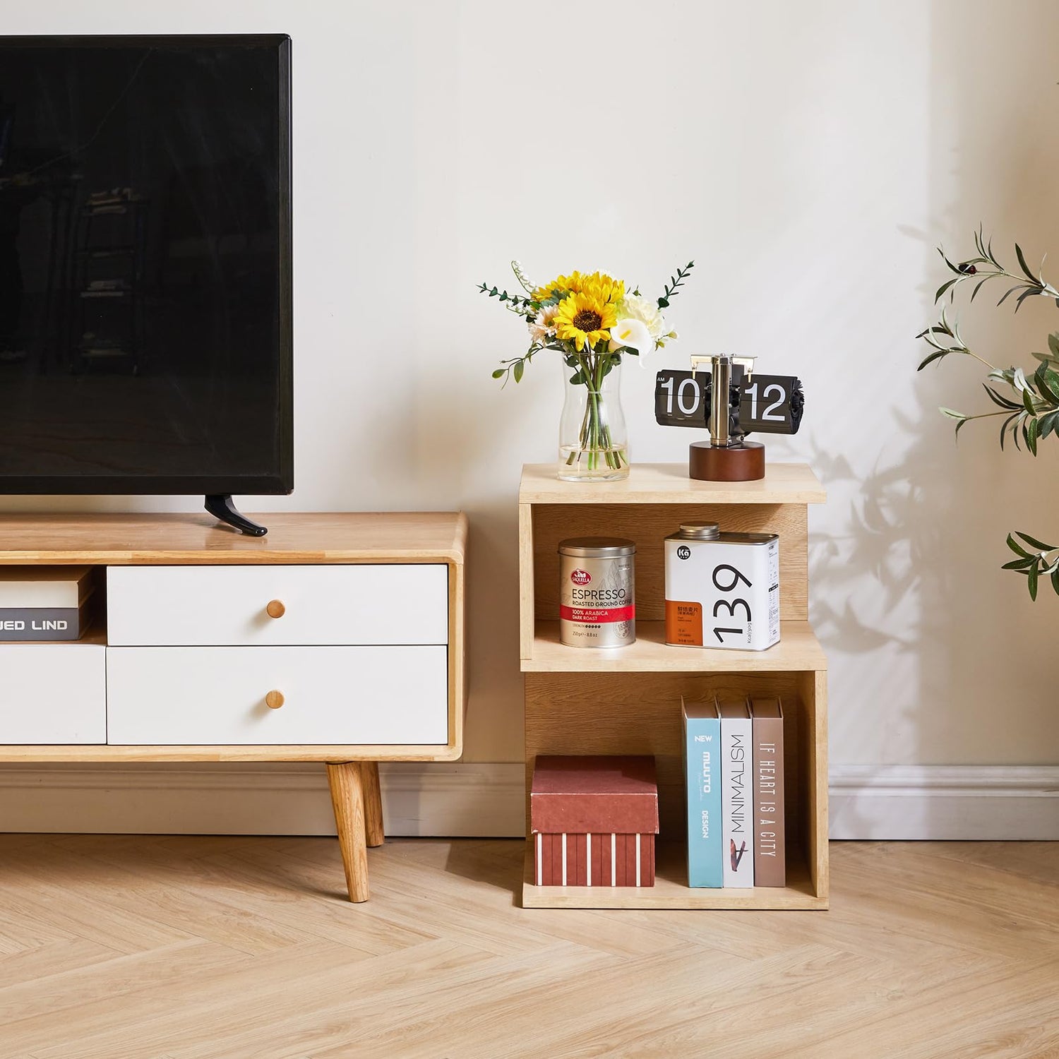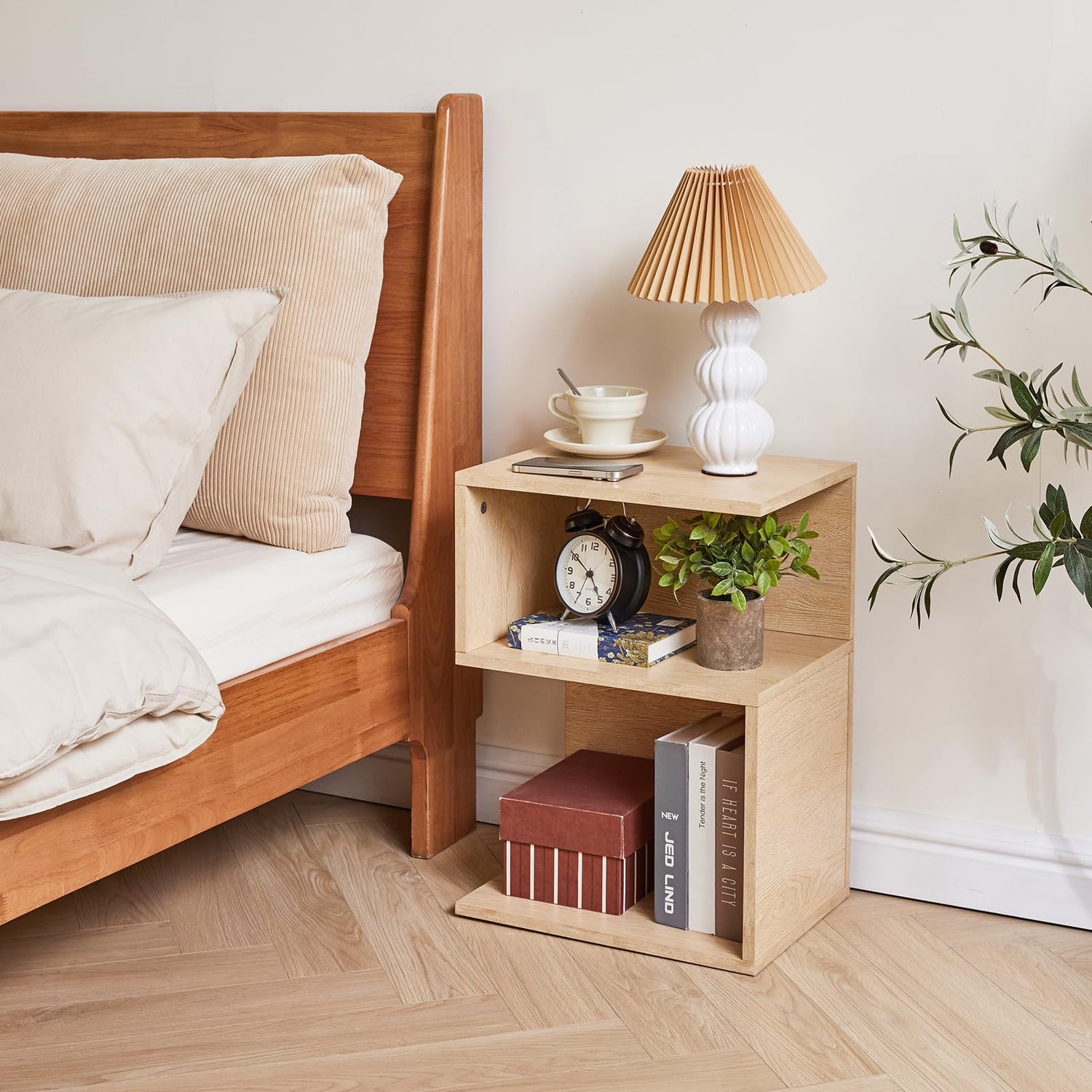 IBUYKE S-Shaped Nightstand, 3-Tier Wood Nightstand with Open Storage, Minimalist End Table for Small Spaces, Easy Assembly, Bedside Table for Bedroom, Natural UWST004R