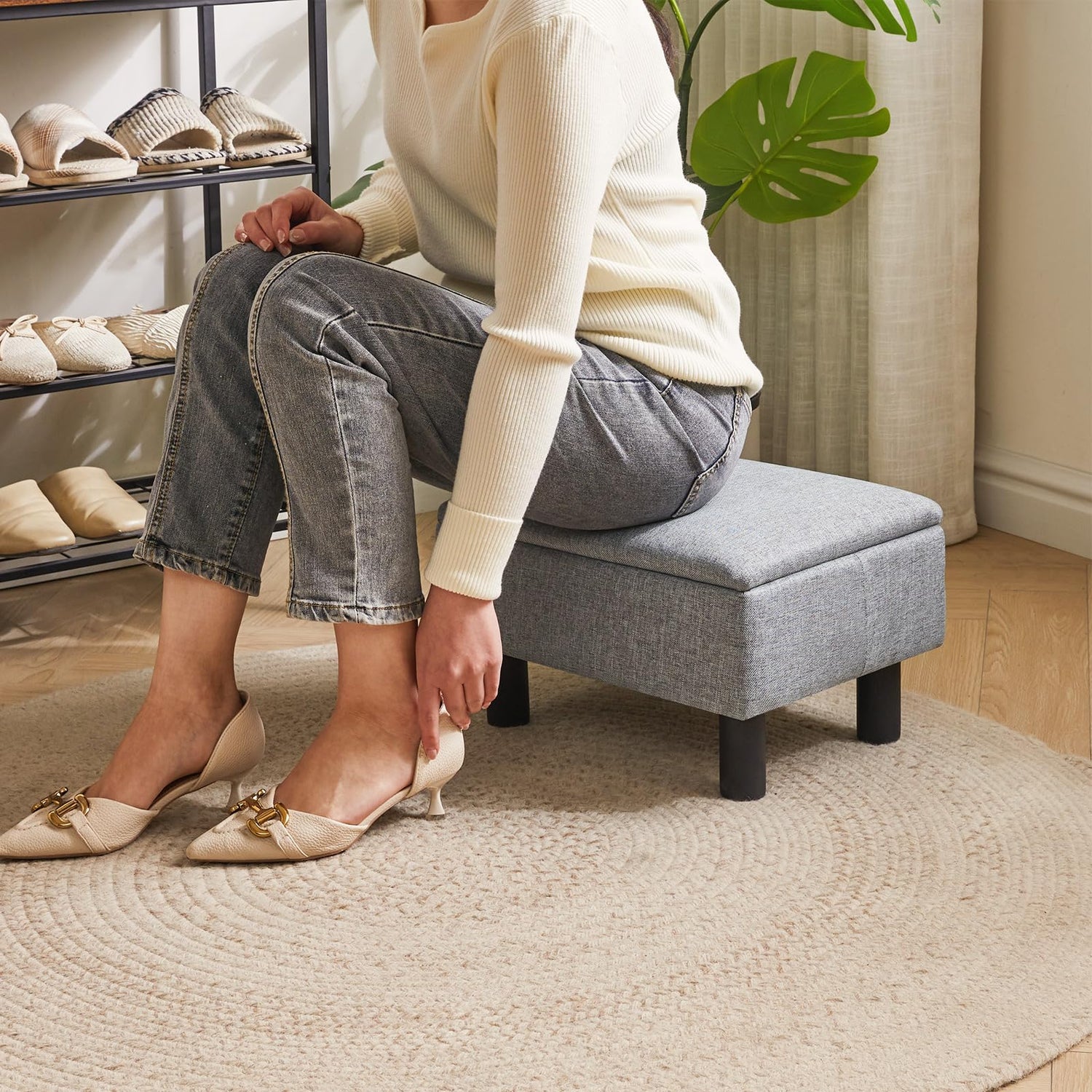 - - Stylish and functional, this storage ottoman stool features a linen fabric cushion top with a rectangular shape and ample storage space inside.