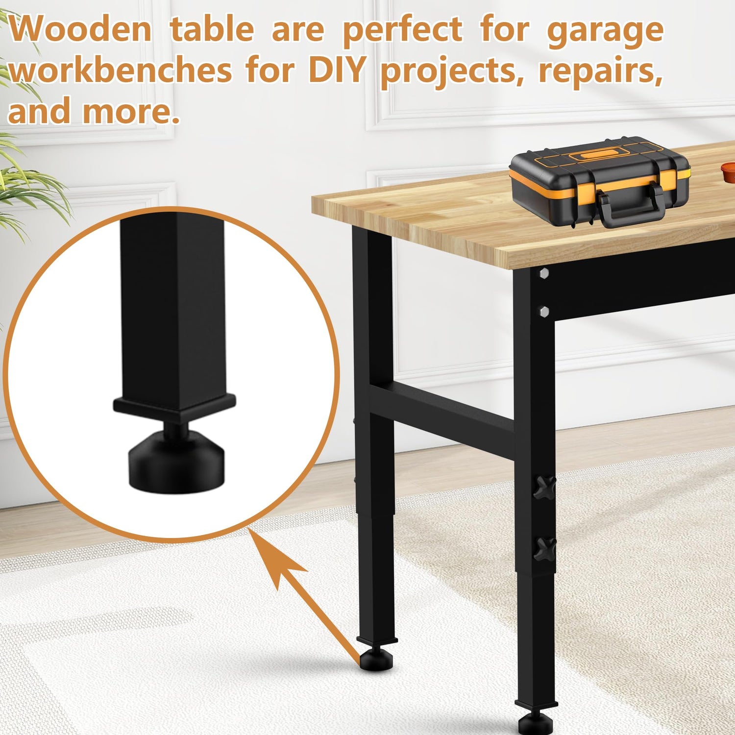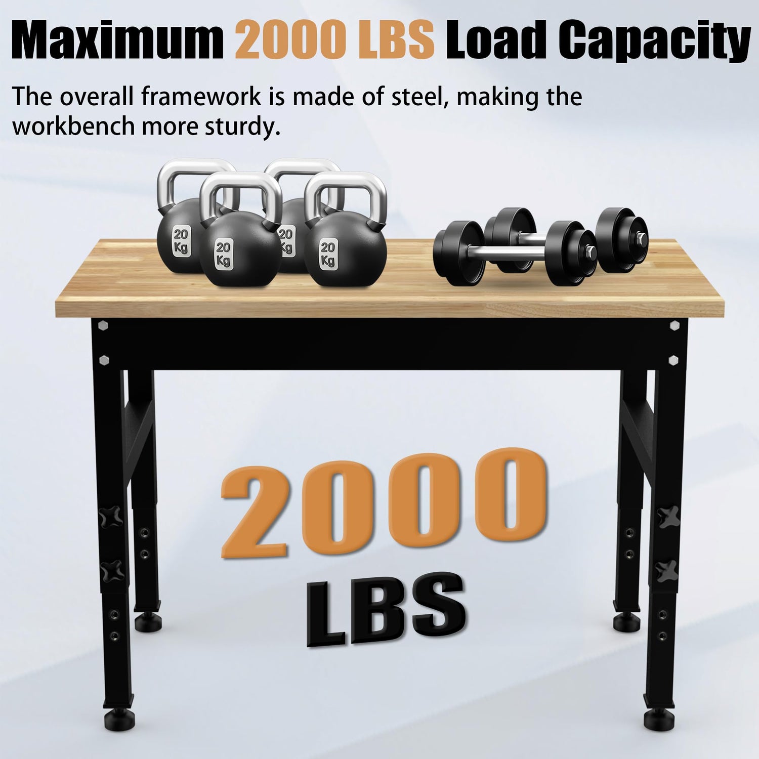 IBXFO 48" Adjustable Workbench, 2000LBS Rubber Wood Top Heavy-Duty Workstation, Suitable for Large Capacity Rubberwood Countertop Workbench for Garage, Office, Workshop
