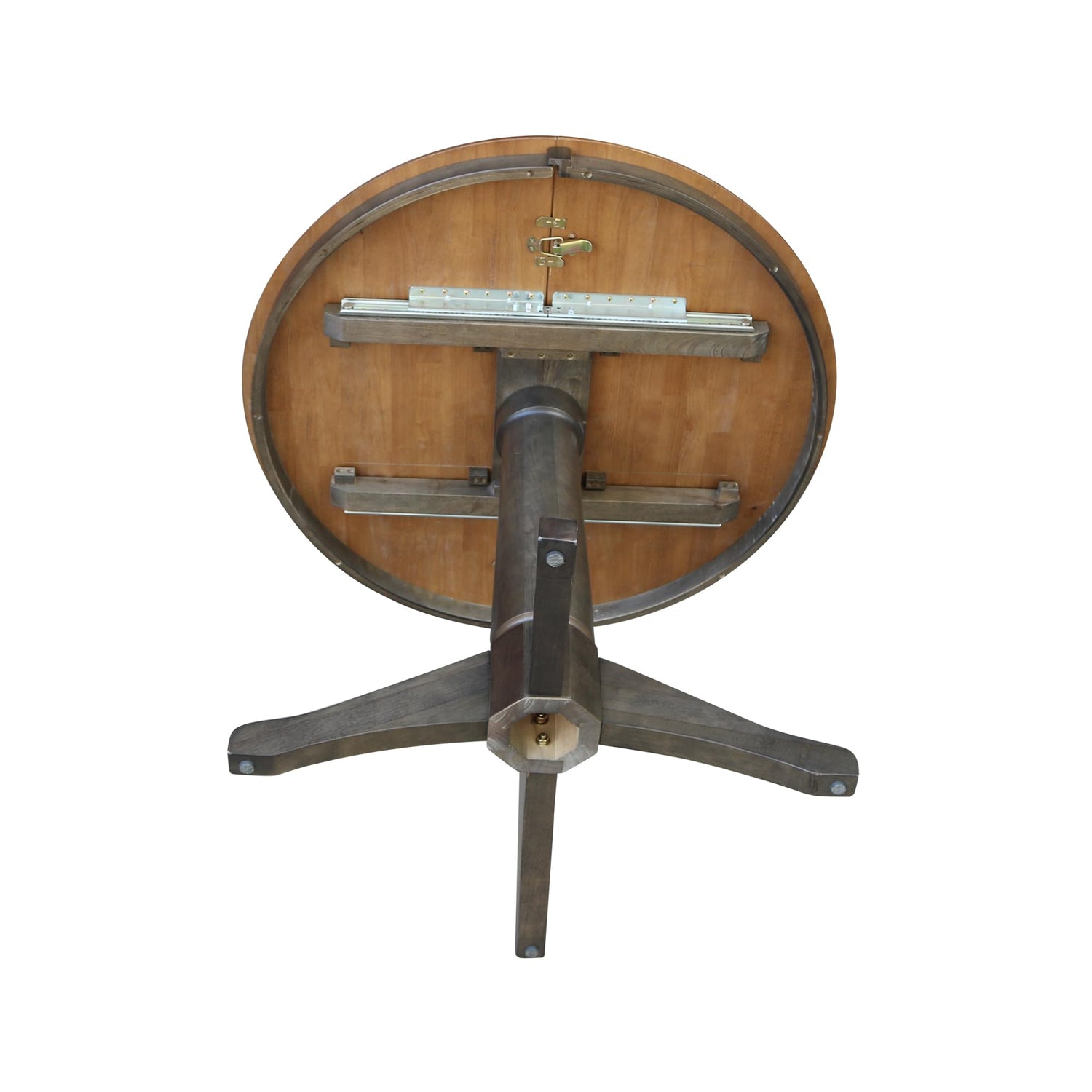 IC International Concepts 36" Round Top Pedestal 12" Leaf-30.1" H-Dining Height Table, Hickory/Washed Coal