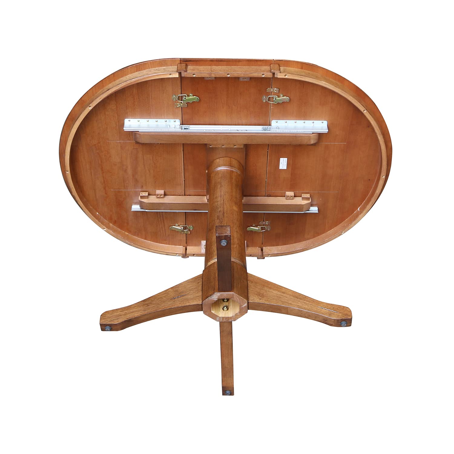 IC International Concepts 36" Round Top Pedestal 12" Leaf-30.1" H Dining Table, Distressed Oak
