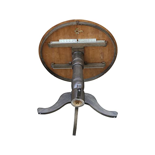 IC International Concepts 36" Round Top Pedestal 12" Leaf-35.3" H-Counter Height Dining Table, Hickory/Washed Coal