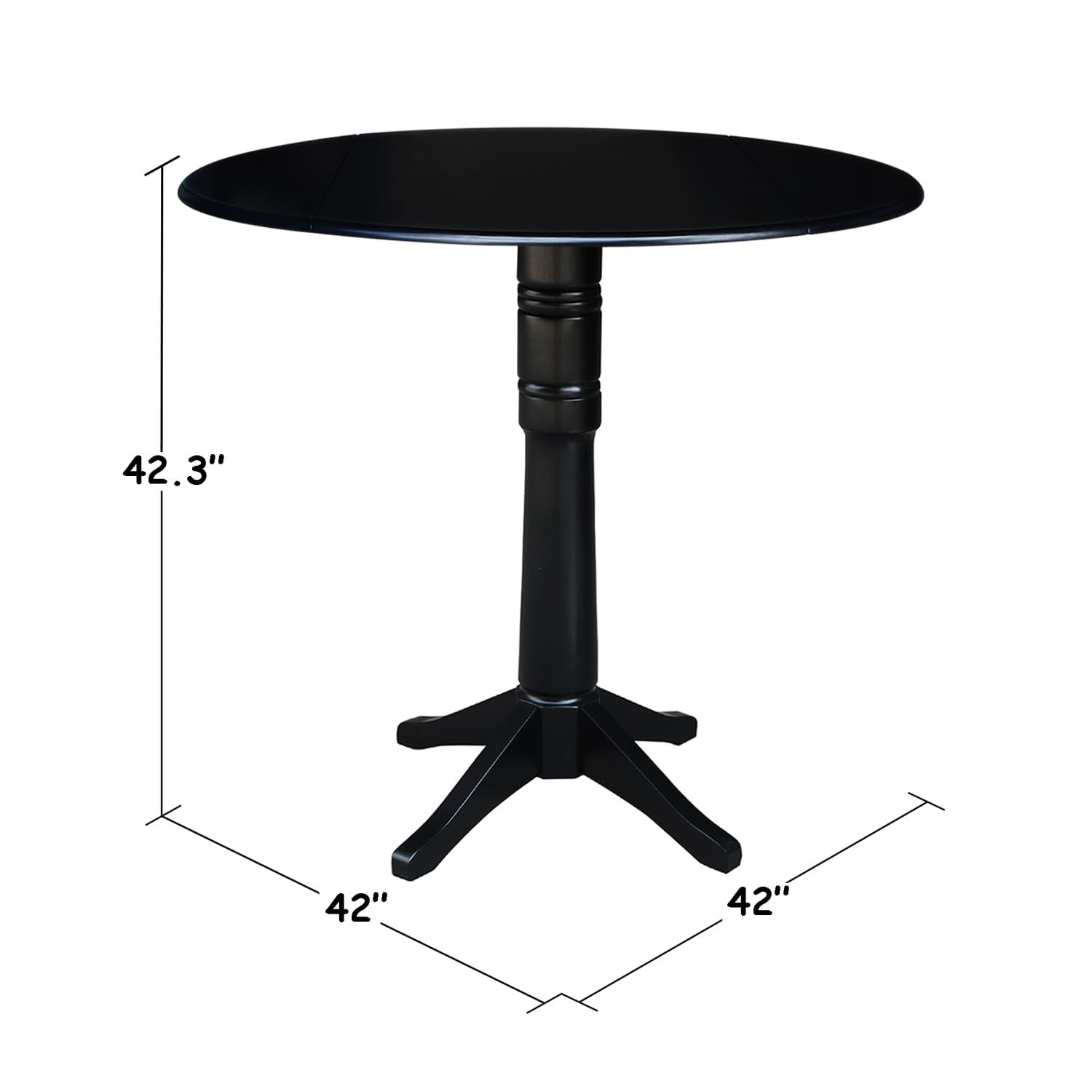 IC International Concepts 42" Round Dual Drop Leaf Pedestal, 42.3" H Dining Table, Black