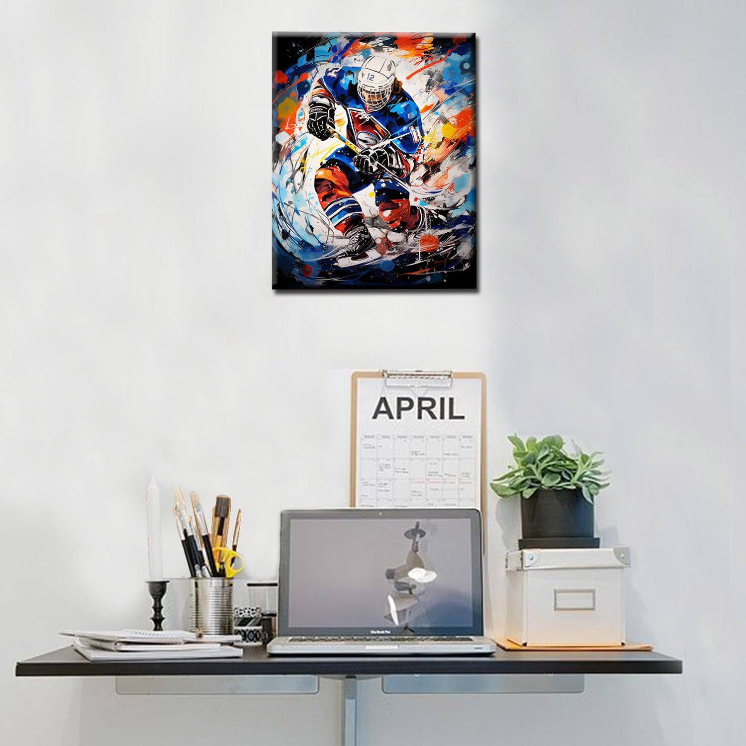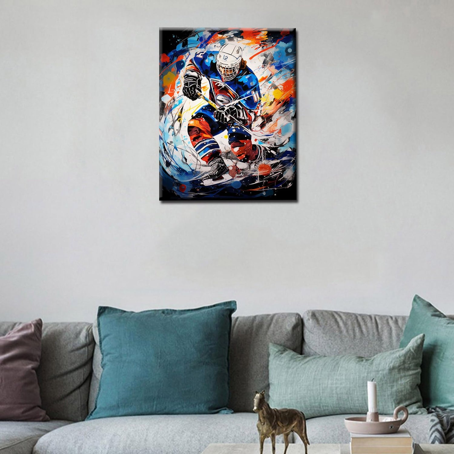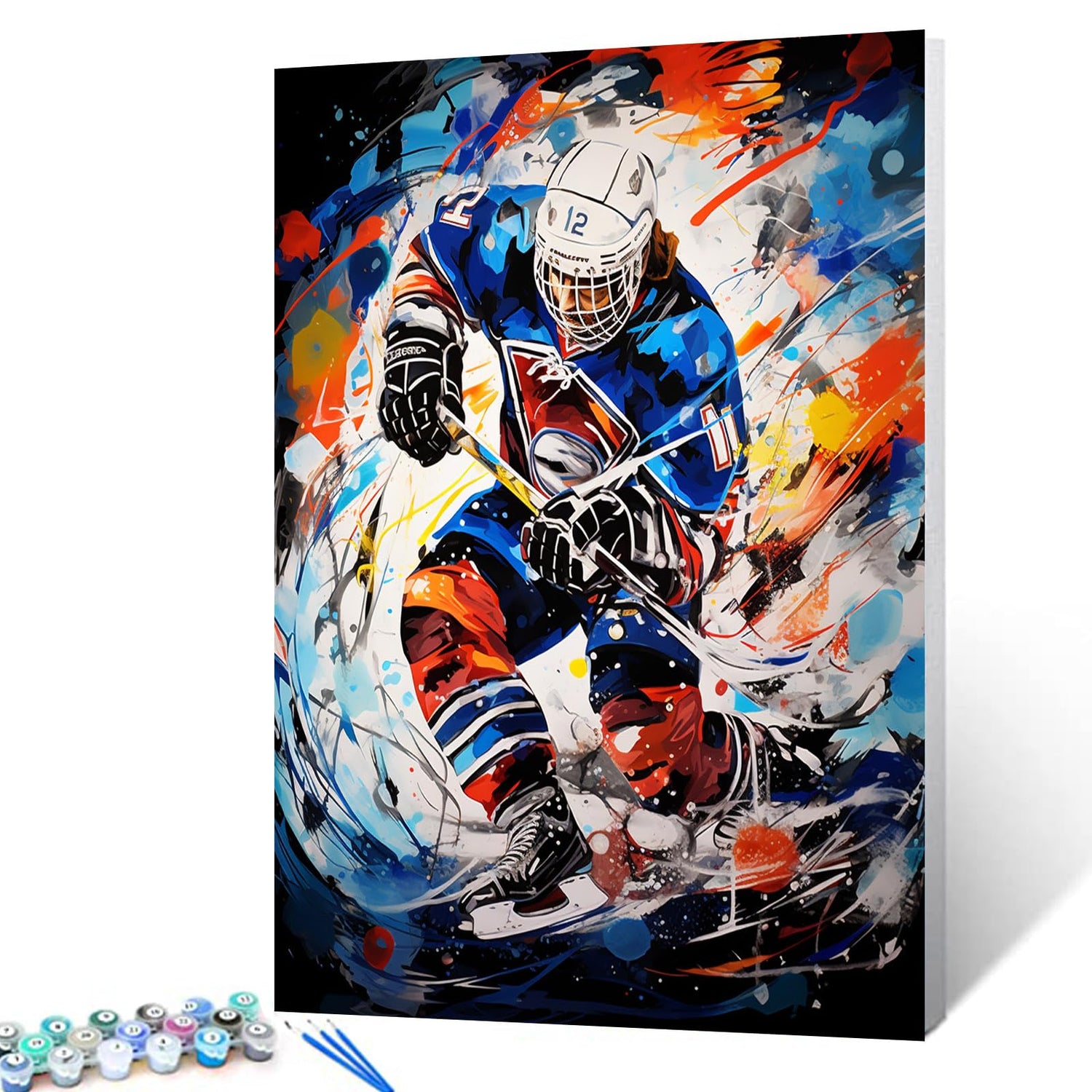 Ice Hockey Athletes Painting Graffitic Sportman Paint by Number Kits 16 x 20 inch Canvas Extreme Sports DIY Oil Painting for Kids Adults Beginner with Brushes and Acrylic Home Decor (Frameless)