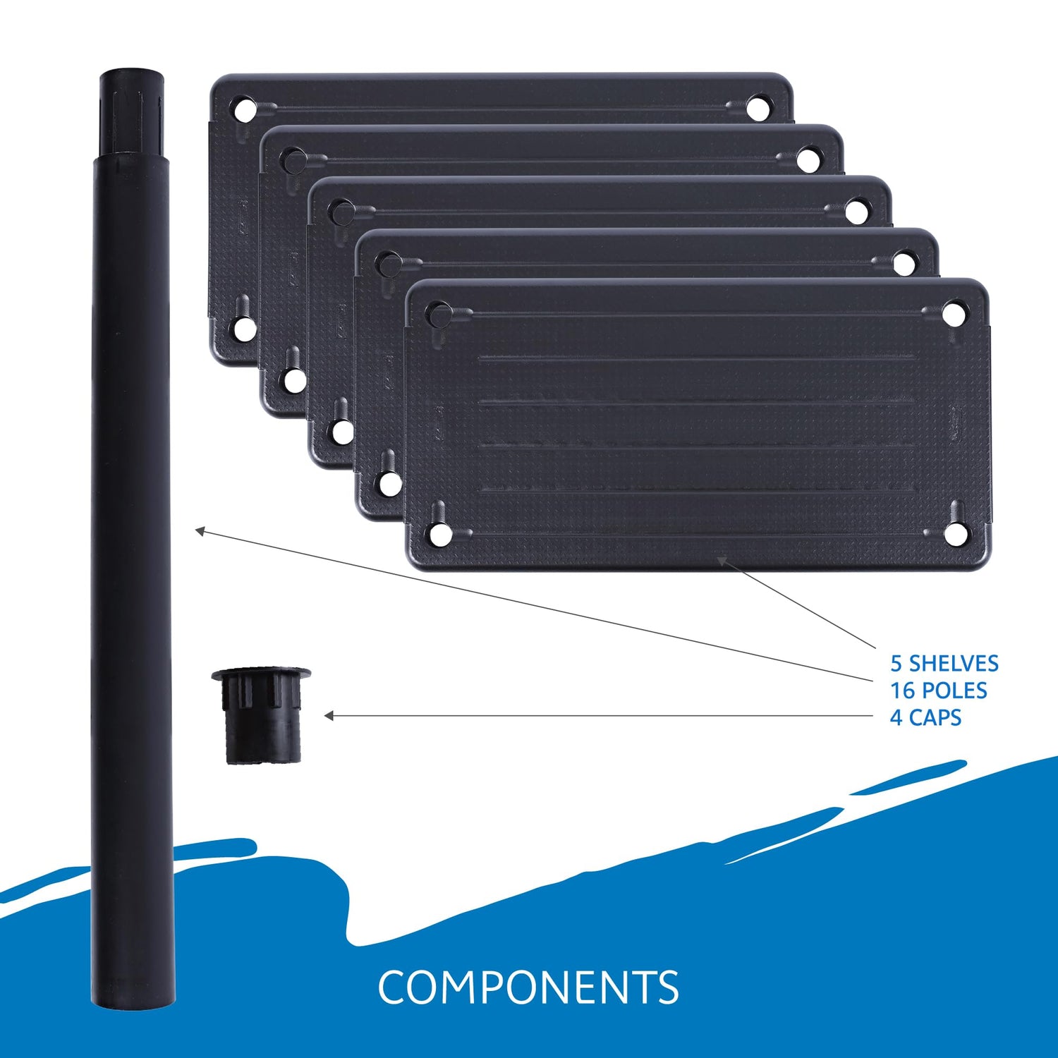- Assembles and disassembles with tool-free ease; snapping together within minutes allows you to spend your time effeciently; Solid surface shelves prevent small items from falling through
