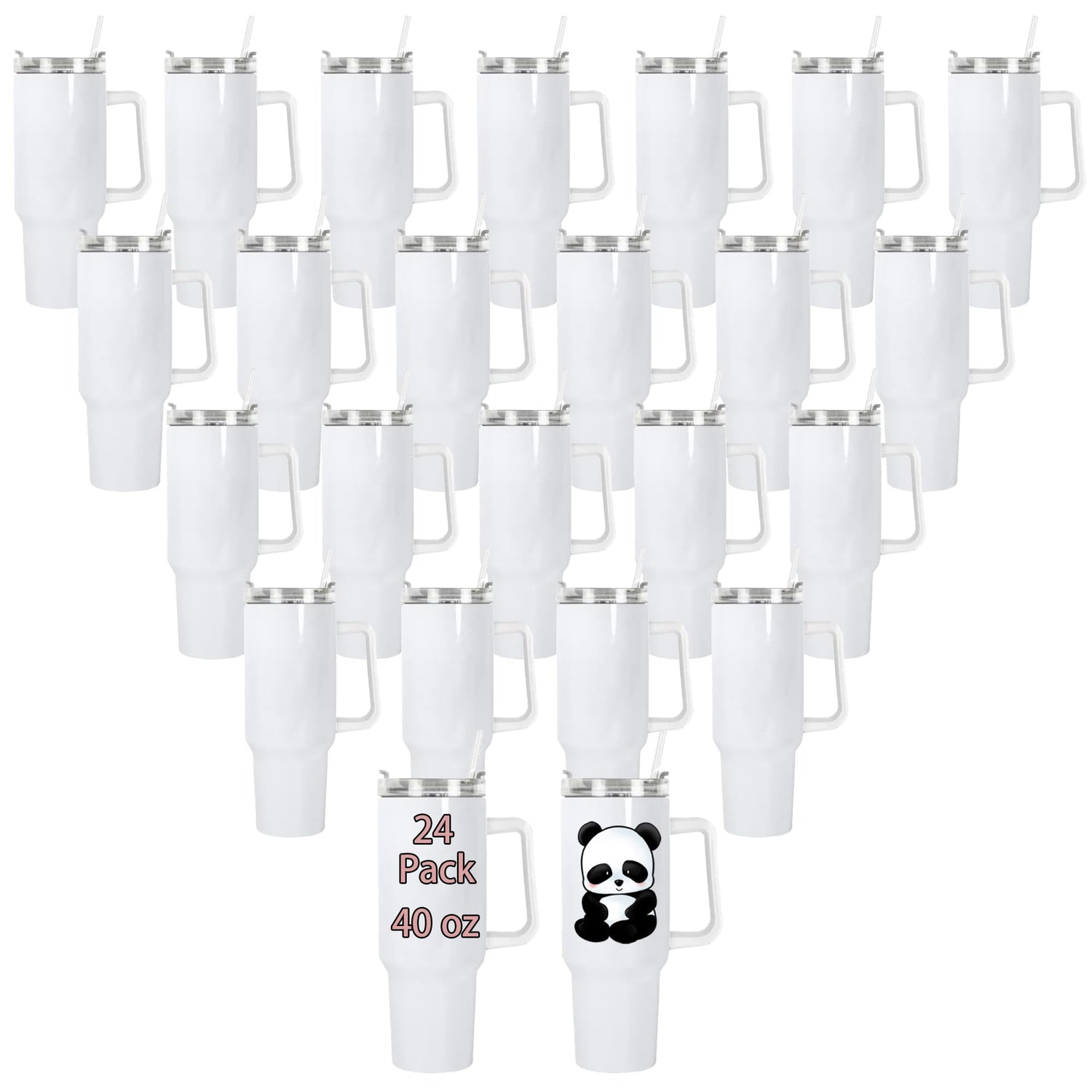 Icesip 24Pack 40oz Sublimation Tumblers with White Handle, Stainless Steel Double Wall Vacuum Insulated Travel Mugs, Sublimation Tumbler for Heat Transfer Machine Printing