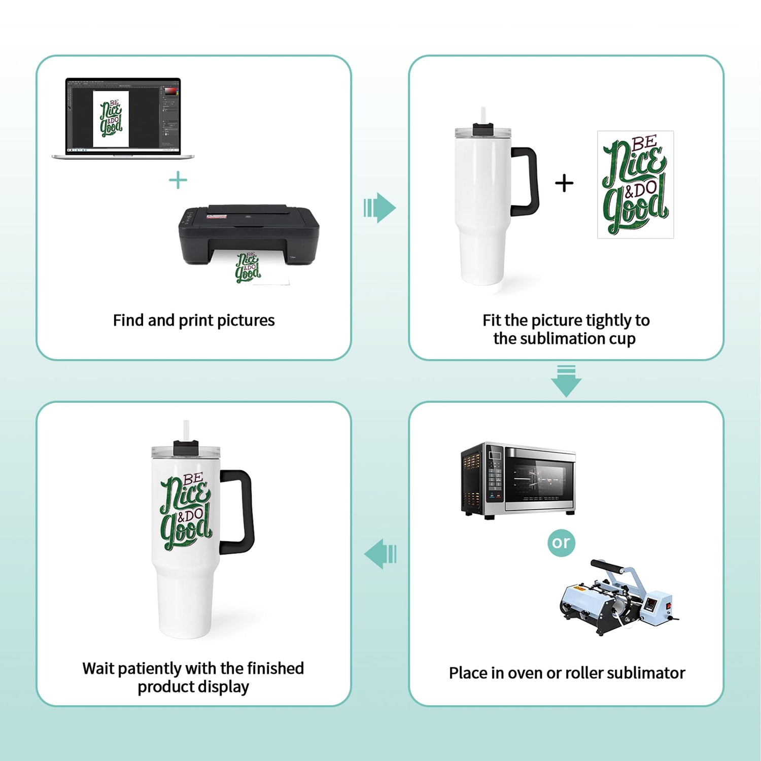 - Design By Yourself: The sublimation tumblers can create personalized gifts for your loved ones or customers. Uses AAA special high temperature sublimation coating treatment to ensure that patterns after the sublimation are clear and bright and will not be atomized, no ghosting or bleed. The 40oz sublimation tumbler is ready for sublimation print by tumbler heat press machine or sublimation oven.