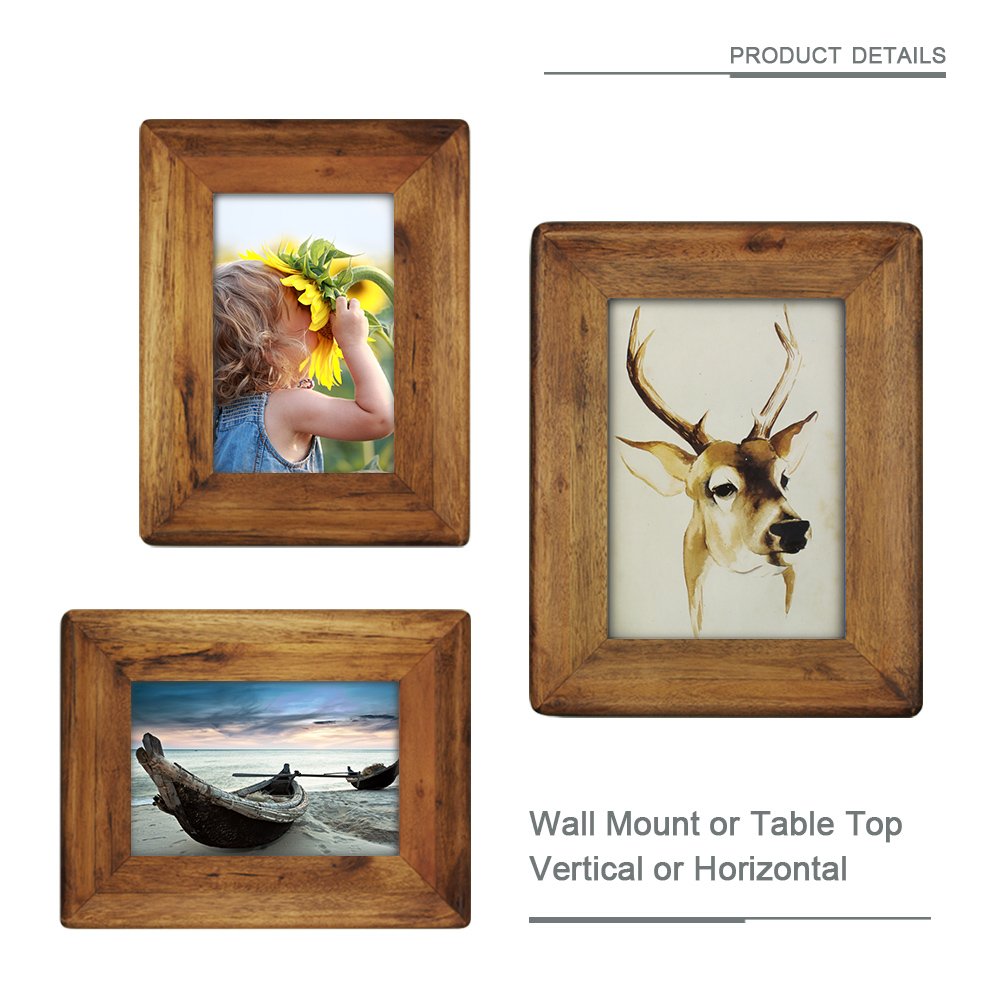 - PREMIUM MATERIAL: Durable solid wood frame lasts for a long time, nature wood texture adds elegance to your home, and sturdy glass front makes your picture looks more vivid