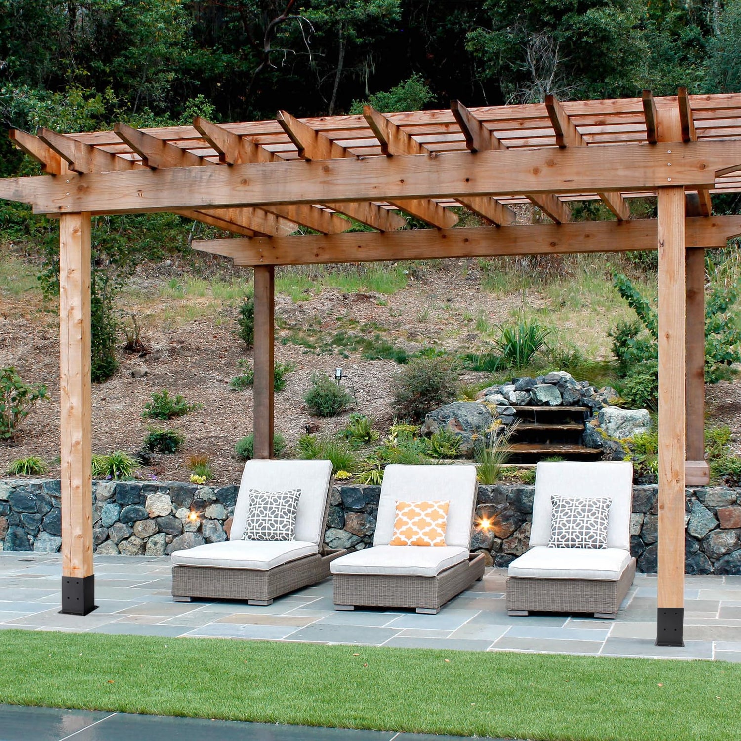 - Easy Installation: Each post base bracket features 8 holes on the top and 6 holes on the bottom, suitable for 3.6" x 3.6" posts. It can be securely mounted on wooden or concrete floors.