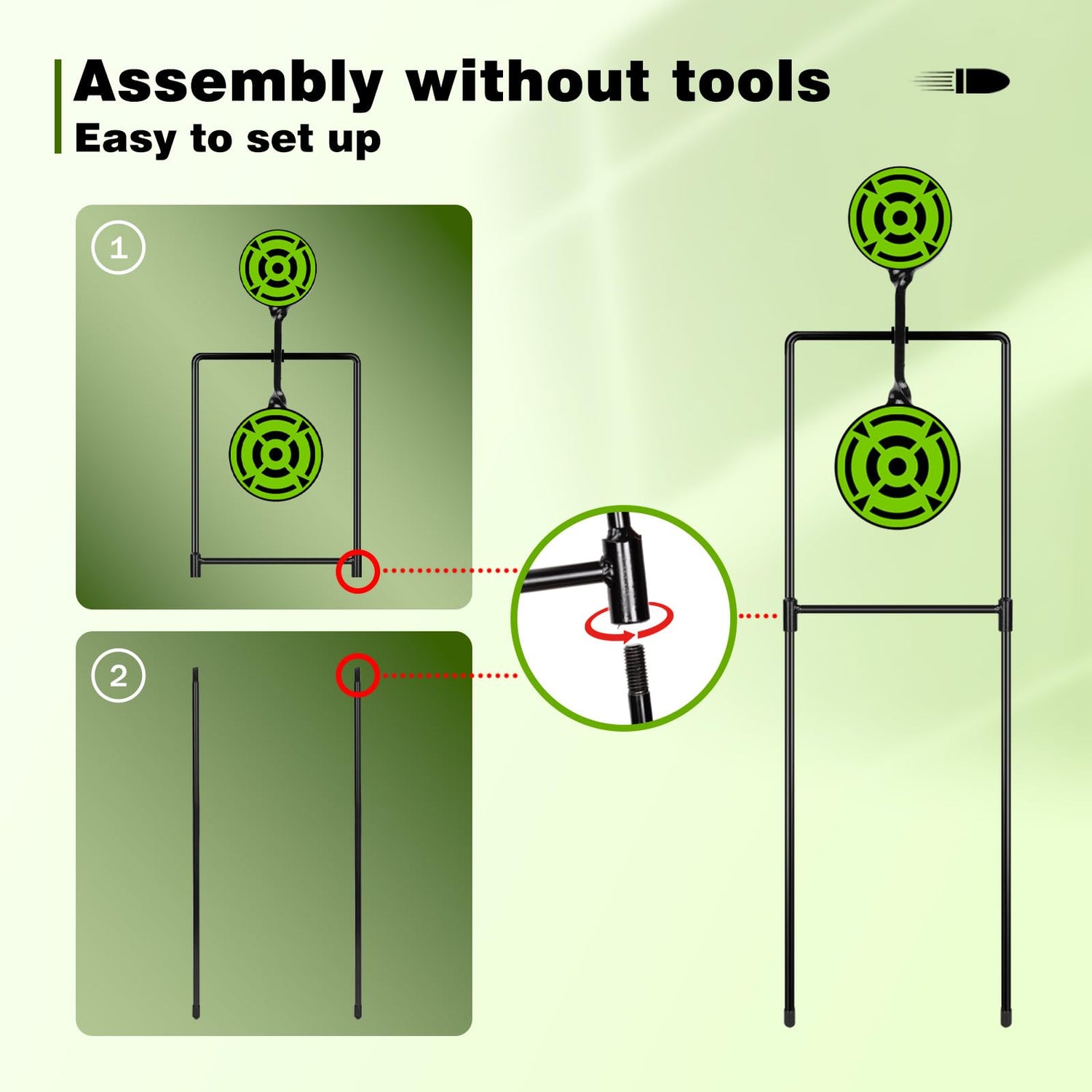 - Auto Reset: The 2 different sized targets rotate to a set position when hit and make a "tink" sound when they hit the metal target. This allows you to focus more on your shooting practice without having to manually reset the targets.