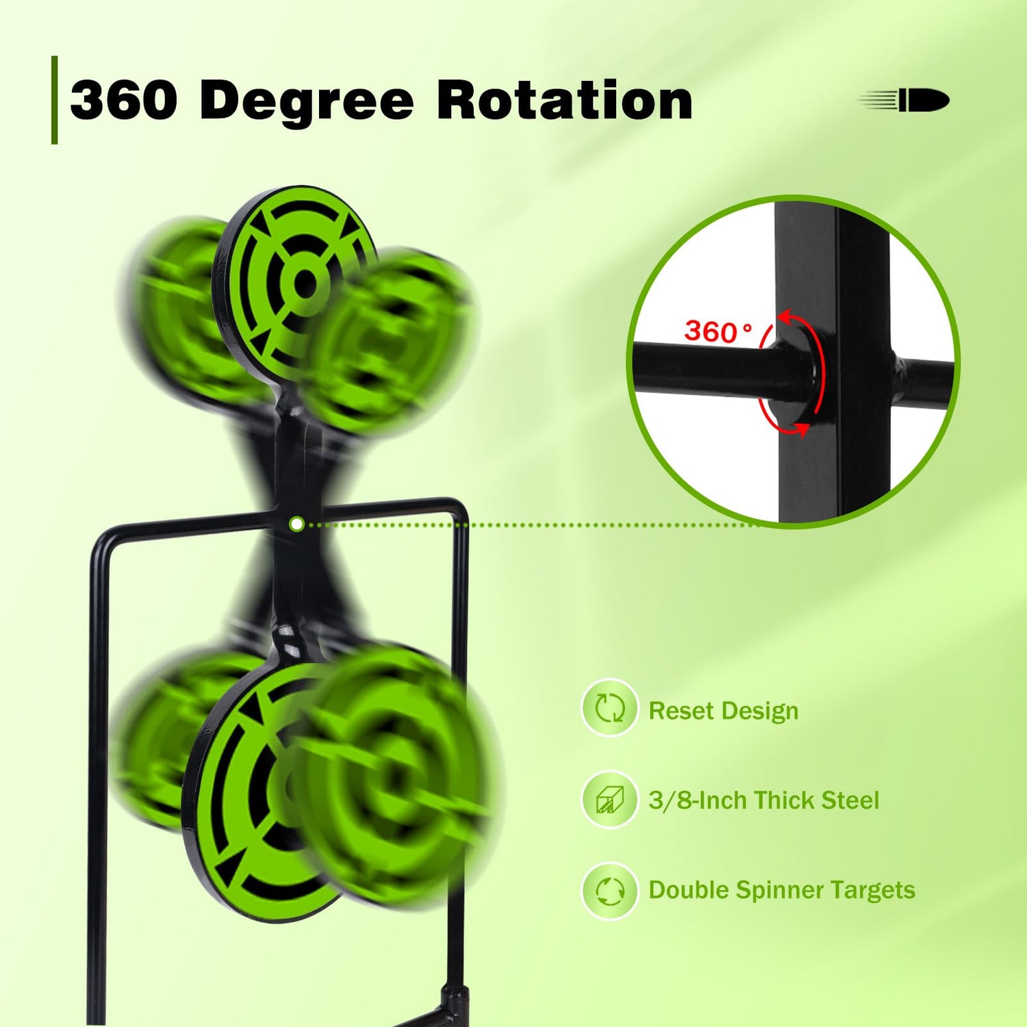 Ideagle Double Spinner Shooting Targets, 3/8" Thick Metal High Caliber Auto Reset Steel Target for Centerfire Handguns up to .44 Magnum
