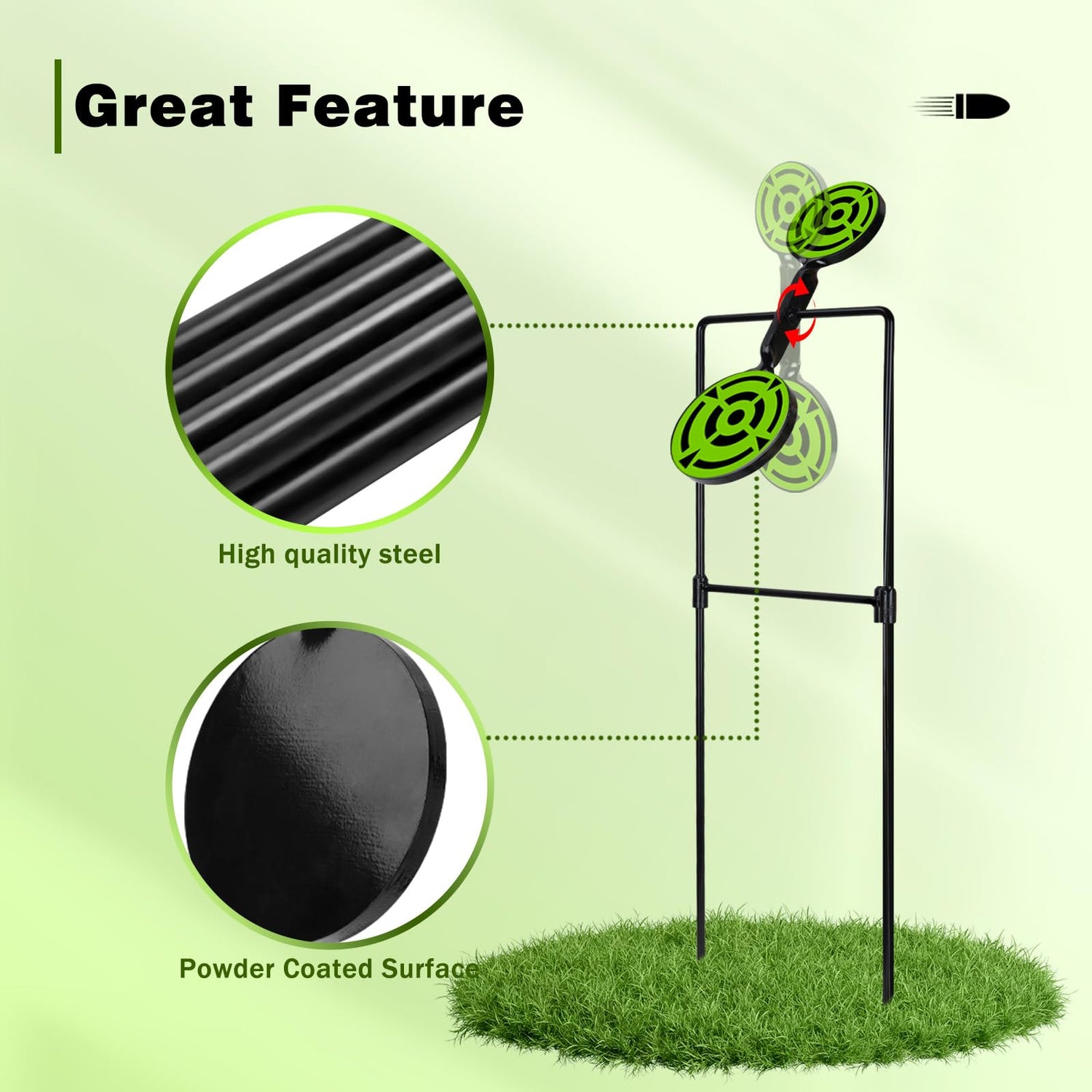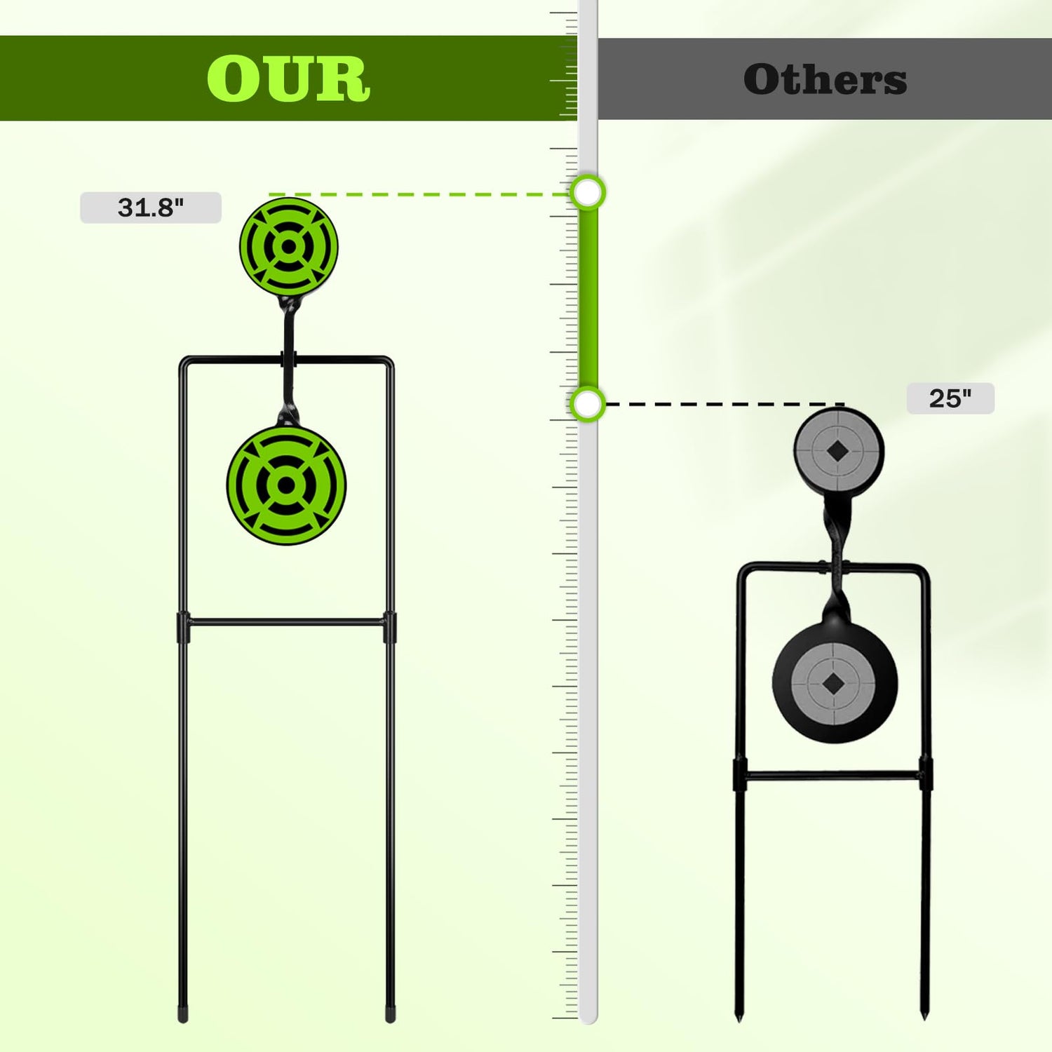 - Heightened Design: The double spinner target height of 31.8 inches, insert the legs into the ground, Heightened design so that the target will not be blocked.The target is 3/8" thick and has diameters of 3.54" and 4.52", allowing you to test your accuracy and improve your shooting skills.