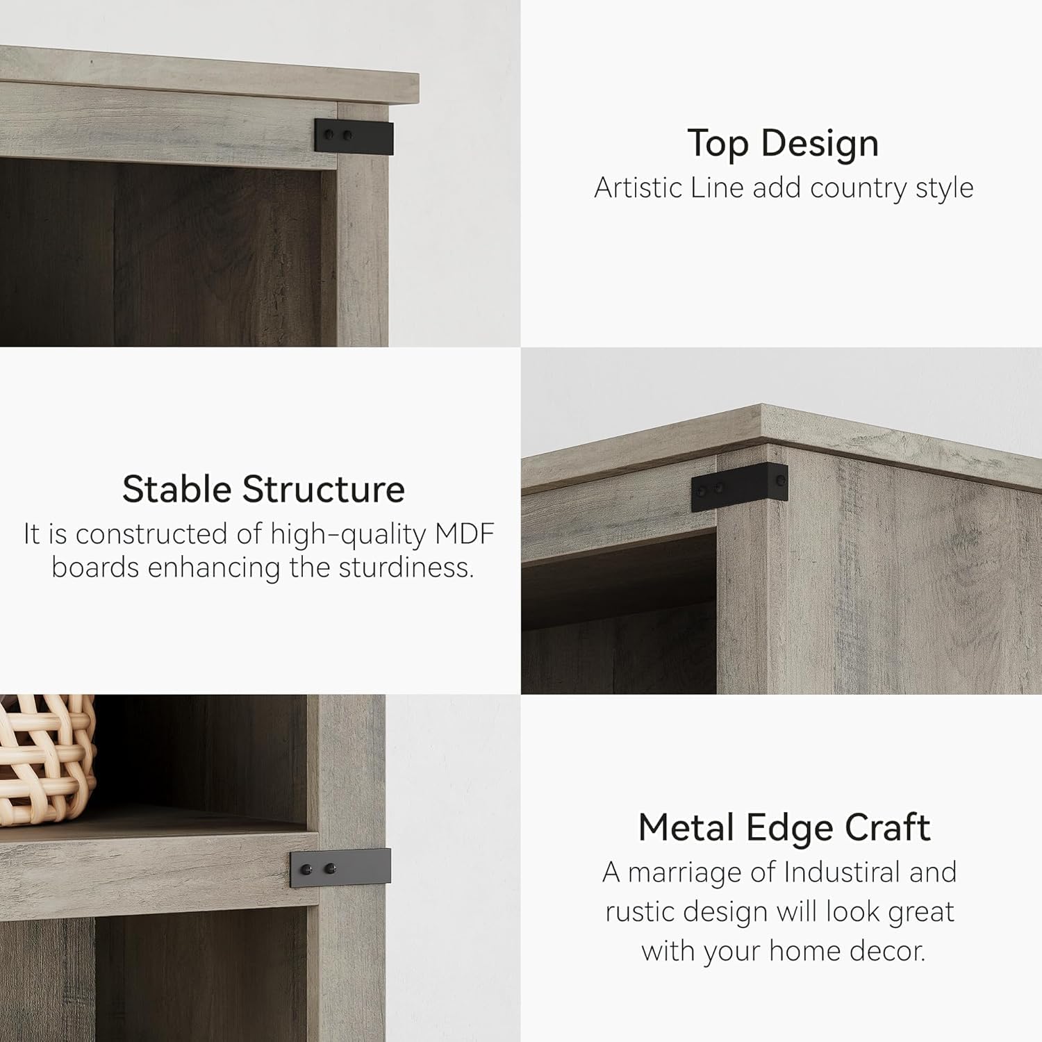 - 【Colonial Moulding & Iron-Angle Farmhouse Style】Distressed iron corner brackets + handcrafted colonial moulding on top panel. Authentic wood grain finish enhances rustic farmhouse aesthetics.
