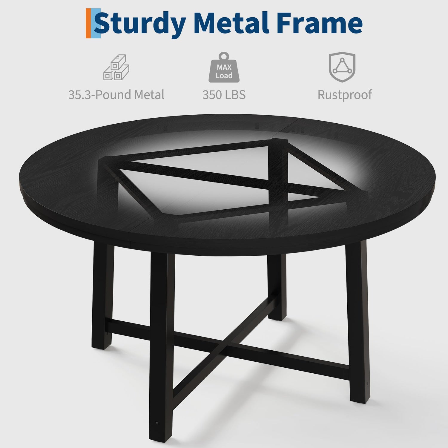 IDEALHOUSE 47" Round Dining Table for 4, Kitchen Dining Room Table with Sturdy Metal Frame, Wood Circle Kitchen Table for Space Saving -Black