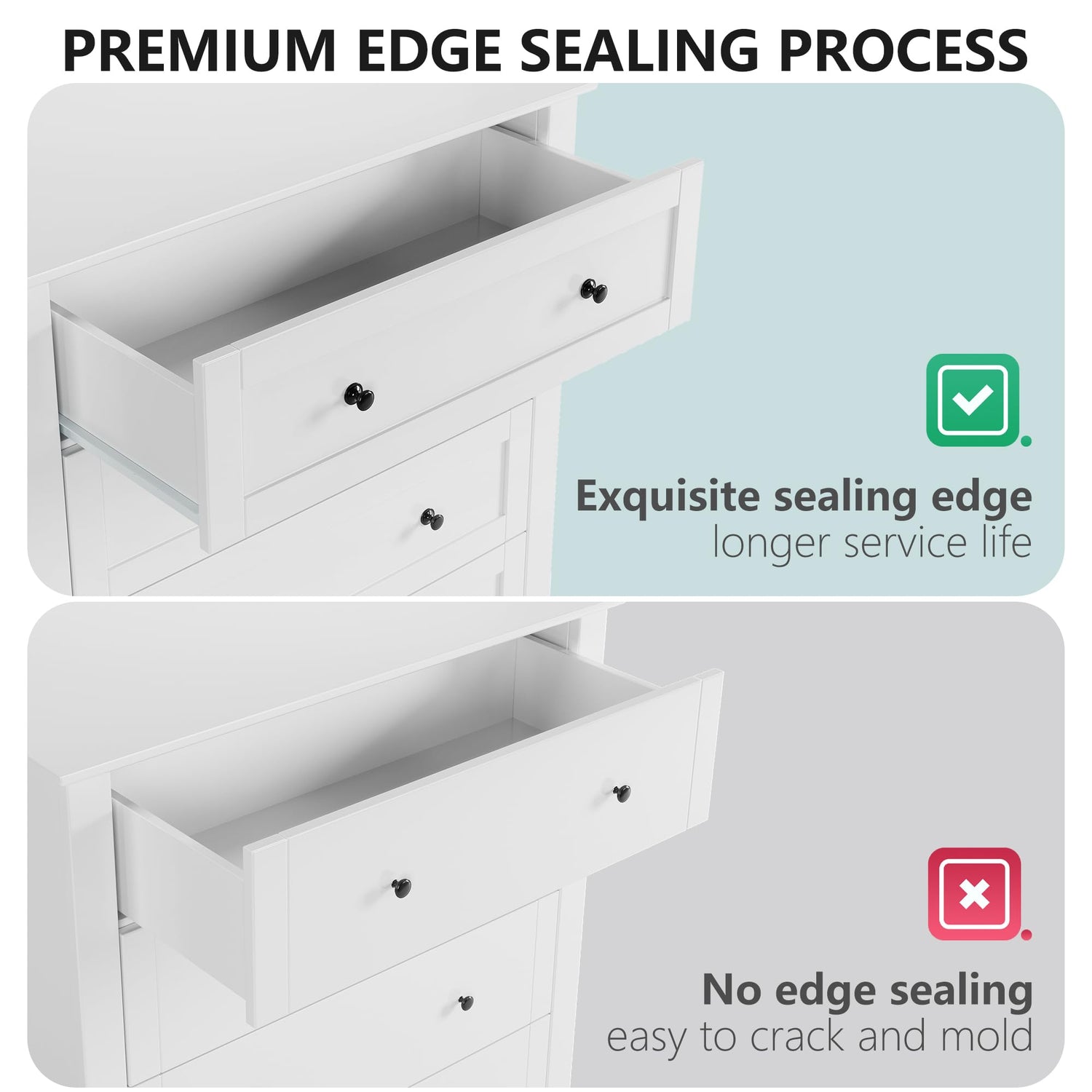 - Stable Construction: Built from premium MDF, this 5-drawer double dresser is both waterproof and scratch-resistant, ensuring it withstands the test of time