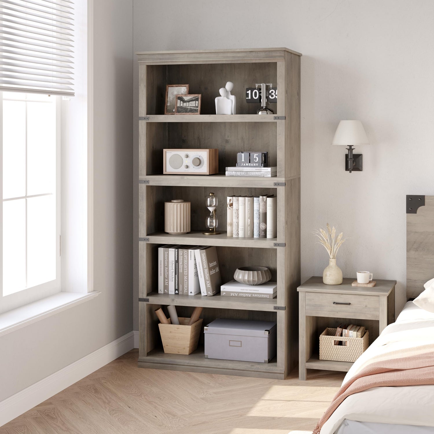 - Quality Materials: This grey farmhouse bookcase combines high-density MDF boards and a well-structured wood frame. The crossbars underneath each shelf are designed to increase the weight capacity to 45 pounds per shelf, preventing deformation and warping caused by heavy items to withstand the challenge of long-term use.