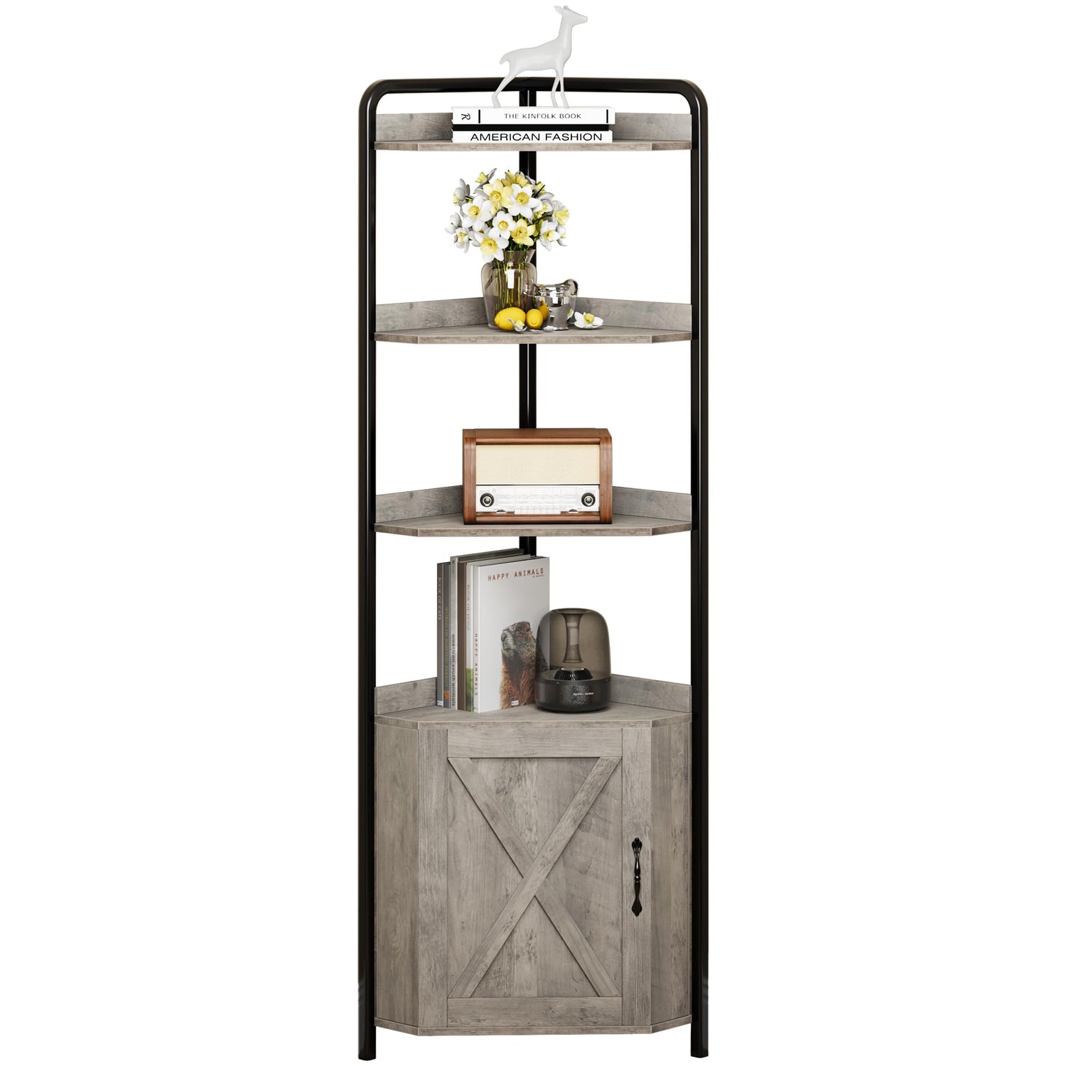 IDEALHOUSE 70.9 Inch Corner Cabinet 5-Tier Tall Corner Cabinet Farmhouse Bookshelves Rustic Storage Rack Industrial Bookcase Plant Stand for Living Room, Bedroom, Home Office, Kitchen