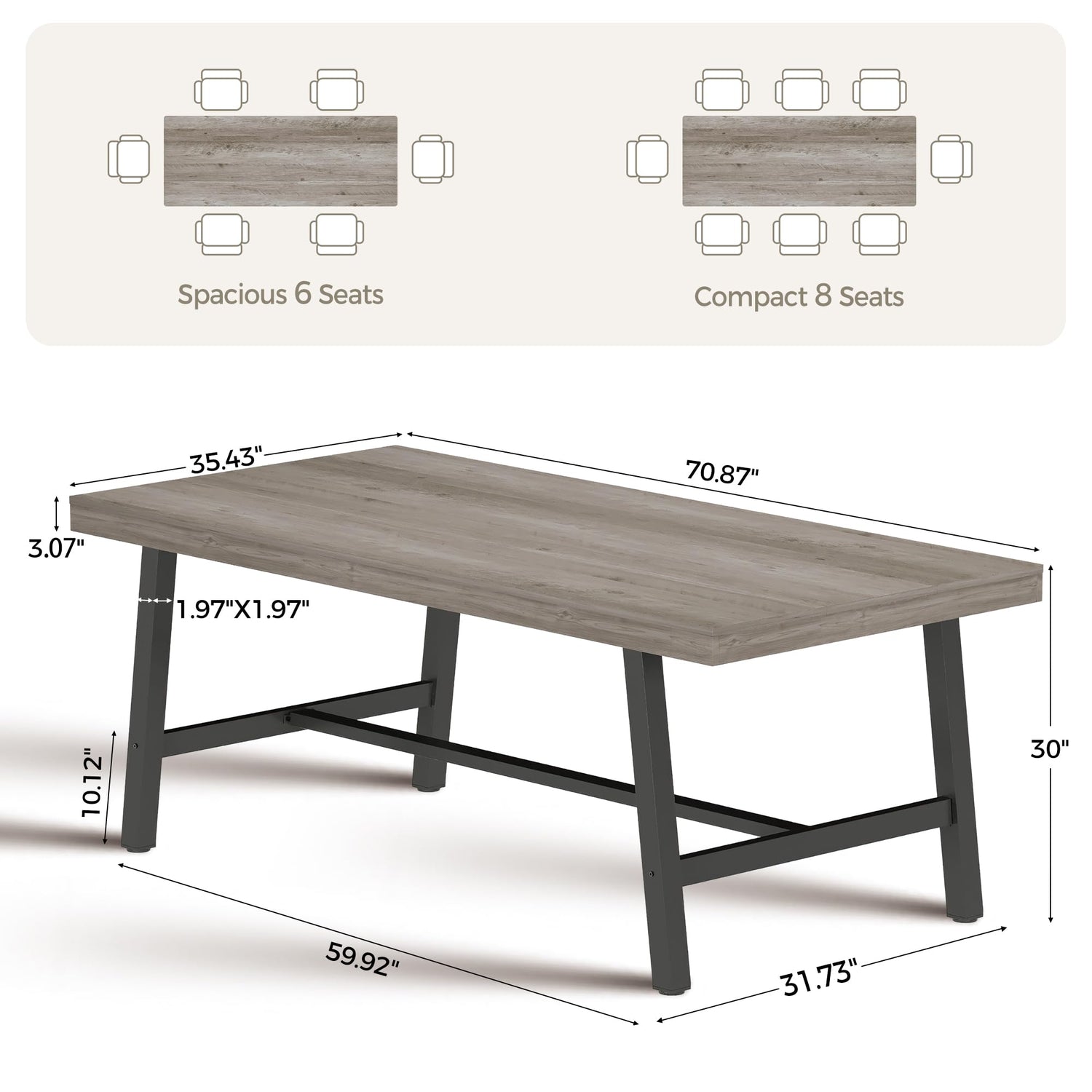 - Large Long Dining Table: This rectangle dining table overall size: 70.87"L x 33.46"W x 31.37"H, this spacious dining table comfortably seats 6-8 people, offering ample space for a joyful and relaxed meal with family and friends.