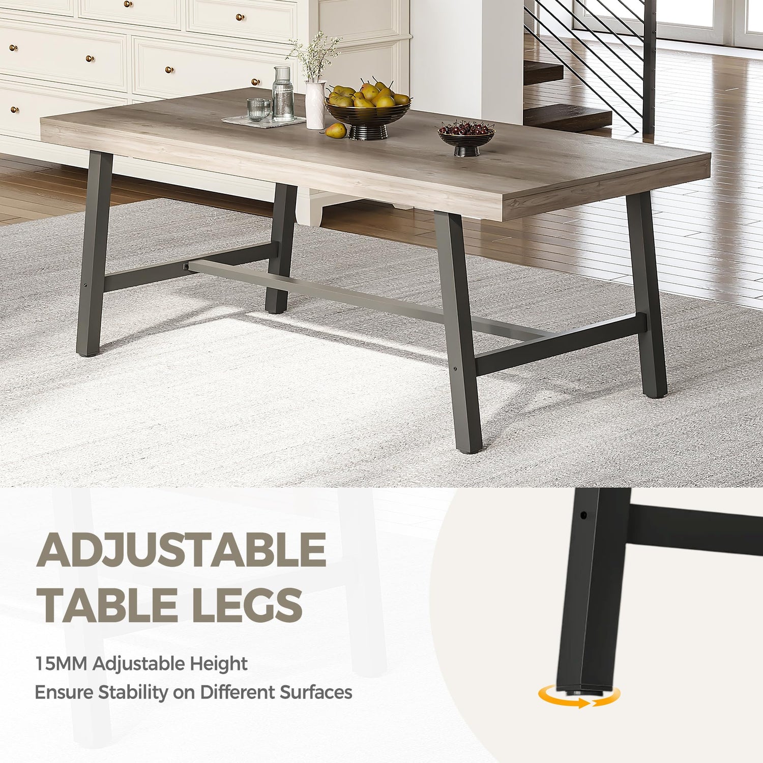 IDEALHOUSE 70 Inch Farmhouse Dining Table for 6 to 8, Large Rectangular Dinner Table for Dining Room, Home Office, Living Room, Gray