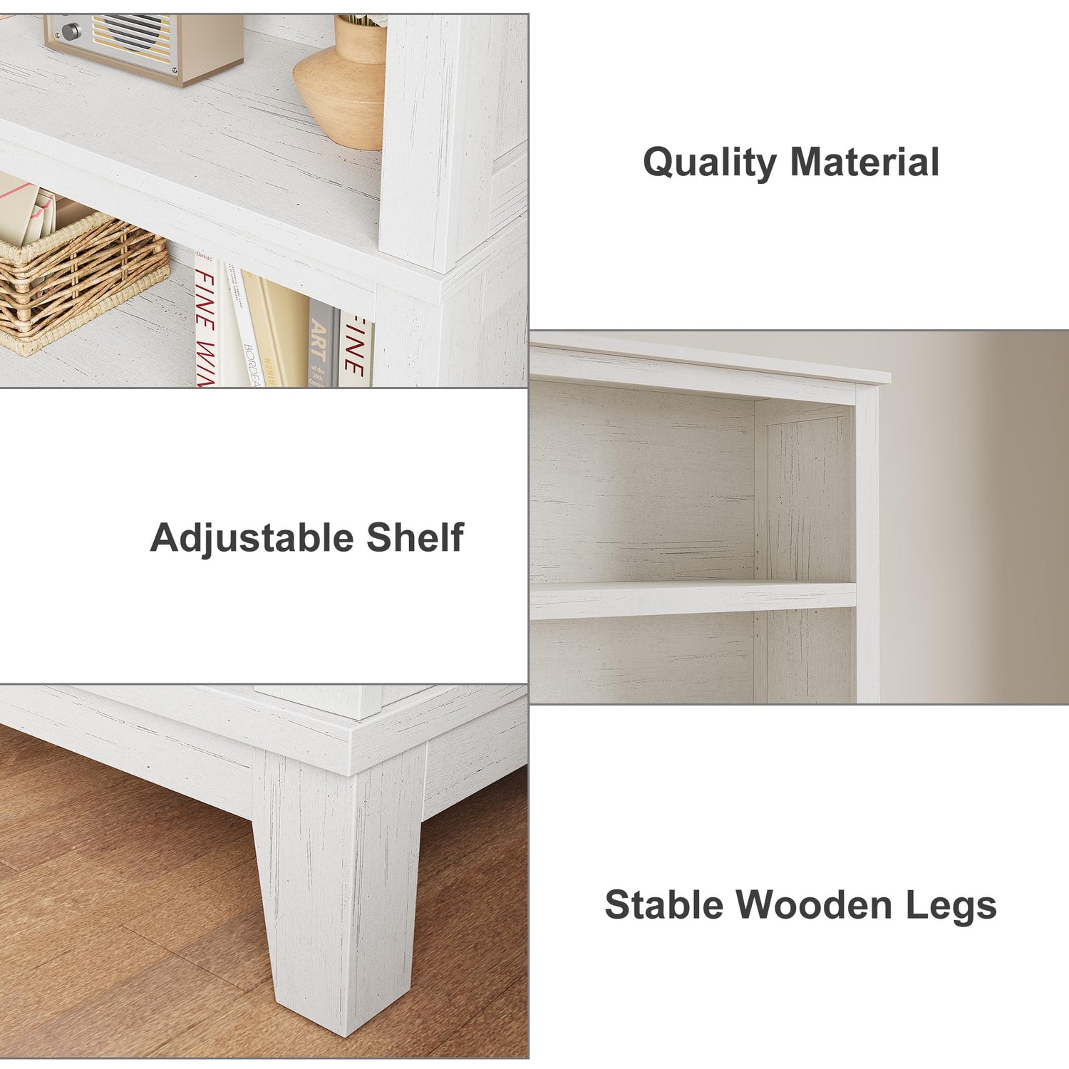 - 【Sturdy and Stable】This farmhouse bookcase combines high-density MDF boards and a well-structured wood frame. The crossbars underneath each shelf are designed to increase the weight capacity to 45 pounds per shelf, preventing deformation and warping caused by heavy items to withstand the challenge of long-term use