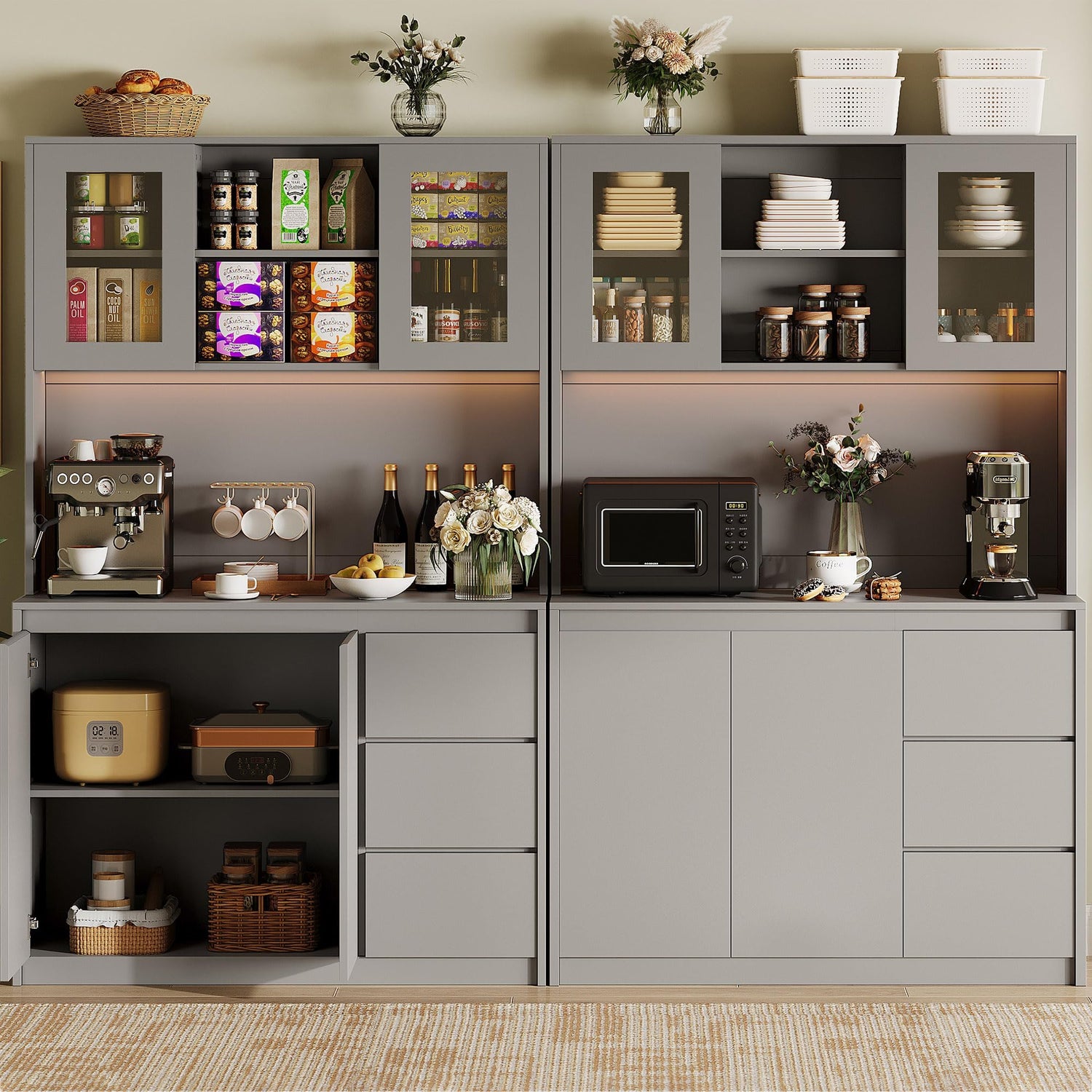 - 【Space-Saving Design】 Ideal for tight spaces, this tall storage cabinet combines beauty and functionality with its compact design. Store everything from cutlery and tableware to pots and pans in the thoughtfully designed drawers and cabinets. The handleless design not only adds a personal touch but also keeps your kitchen looking sleek and organized.