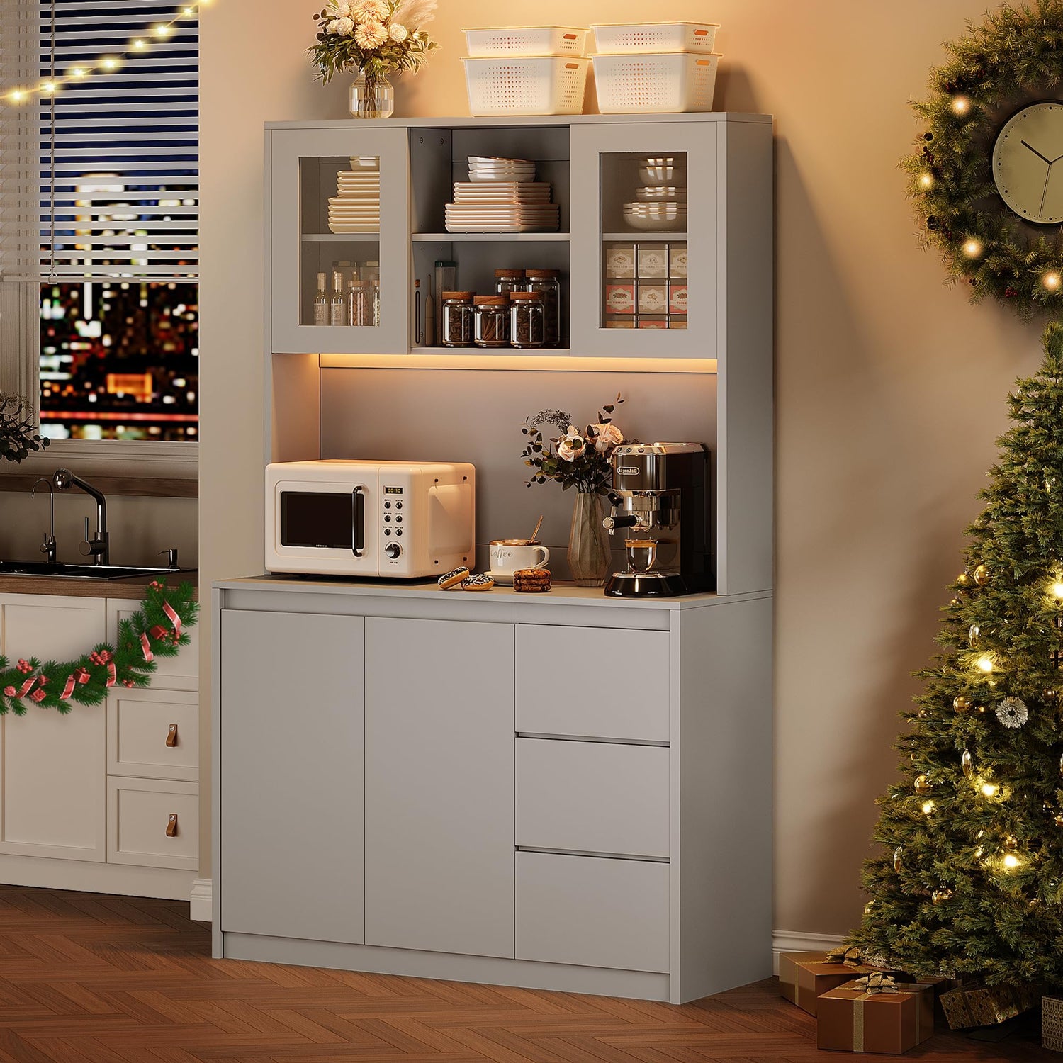 Details: IDEALHOUSE 71" Pantry Cabinet With Charging Station,Tall Kitchen Pantry Storage Cabinet With Led Lights,Kitchen Hutch With Microwave Stand for Dining Room, Living Room