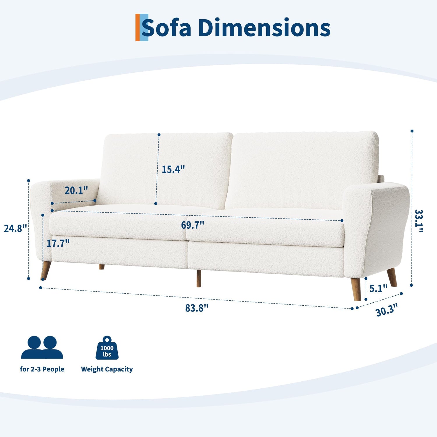IDEALHOUSE 84 Inch Modern Sofa Couch, Large 3-Seater Sofa with Streamlined Armrests, Boucle Loveseat Wood Feet, Comfy Couch for Living Room, Apartment, Lounge, Beige