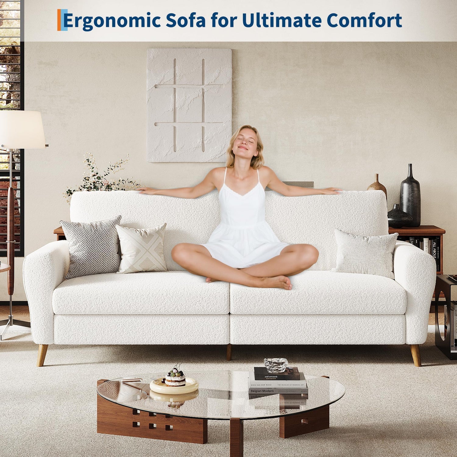 - Modern Streamlined Design: Sleek couch armrests and a graceful silhouette give this 3-seater couch contemporary appeal. Boucle upholstery and natural wooden legs bring mid-century modern charm and a warm, inviting vibe to your living space