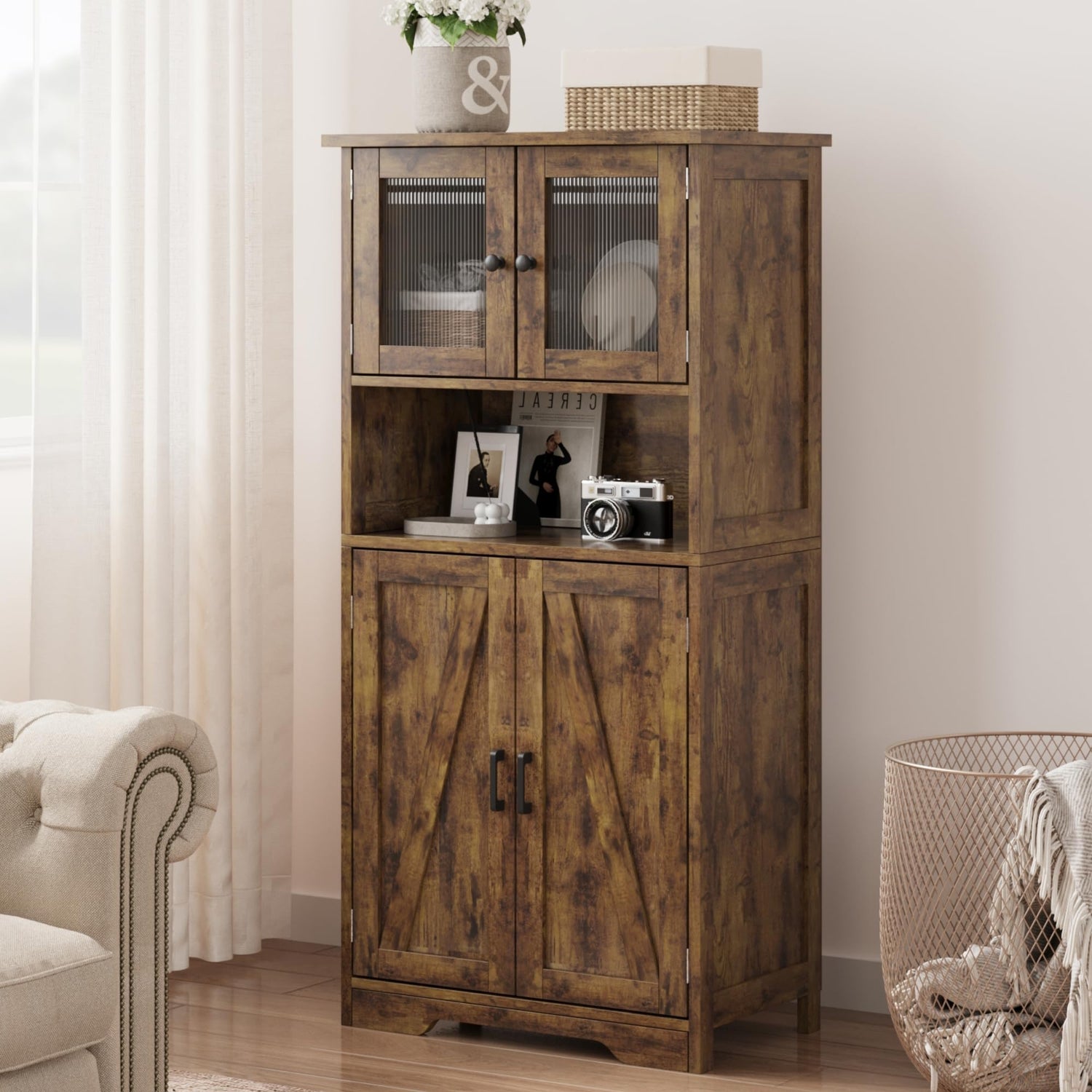 IDEALHOUSE Rustic Brown Freestanding Storage Cabinet with Glass Doors and Adjustable Shelves