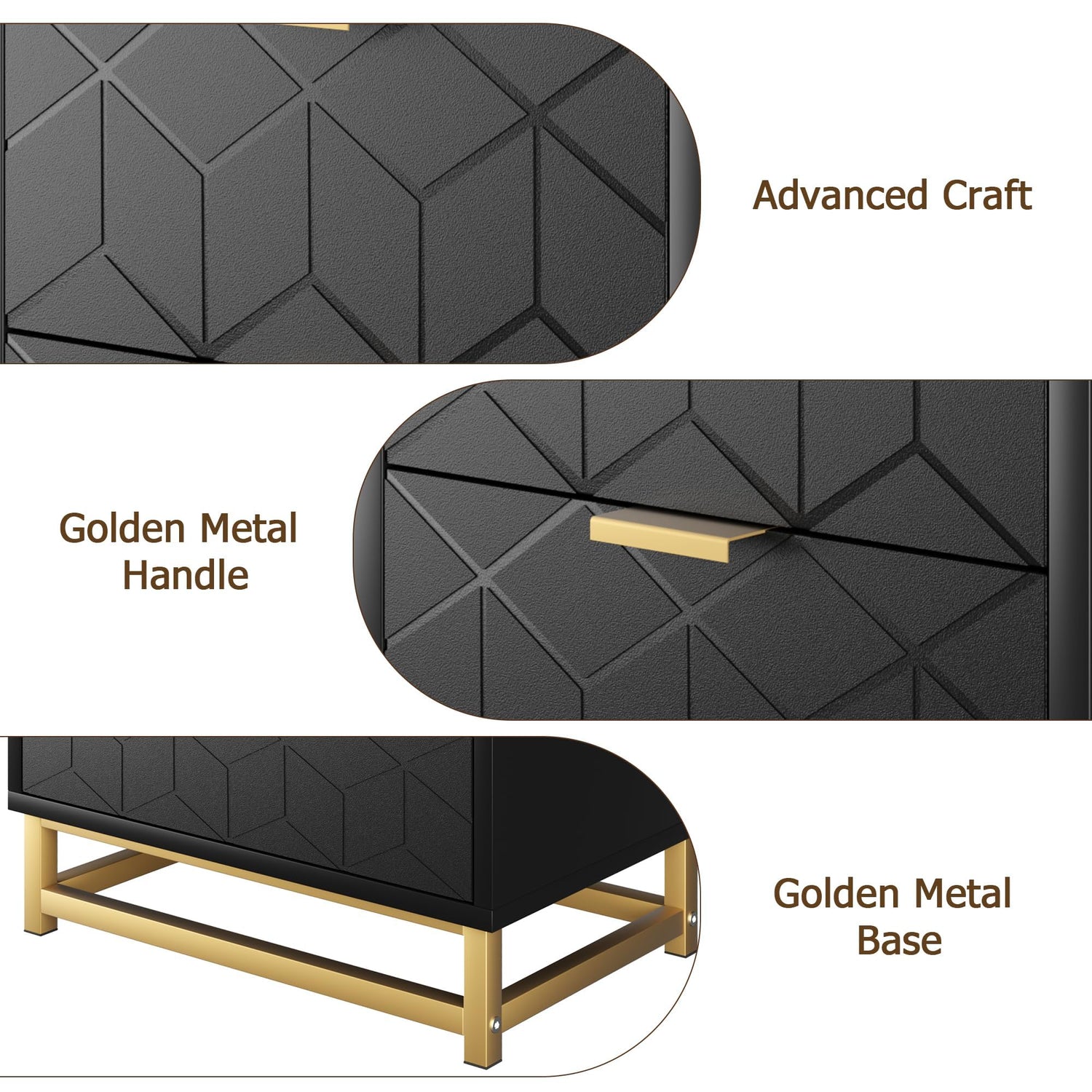 - [Modern and Charming] Exquisite gold metal legs and handles, combined with modern carved patterns, add a atmosphere of art to this black dresser, which can seamlessly blend with a variety of decorative styles, adding a unique charm to your space.