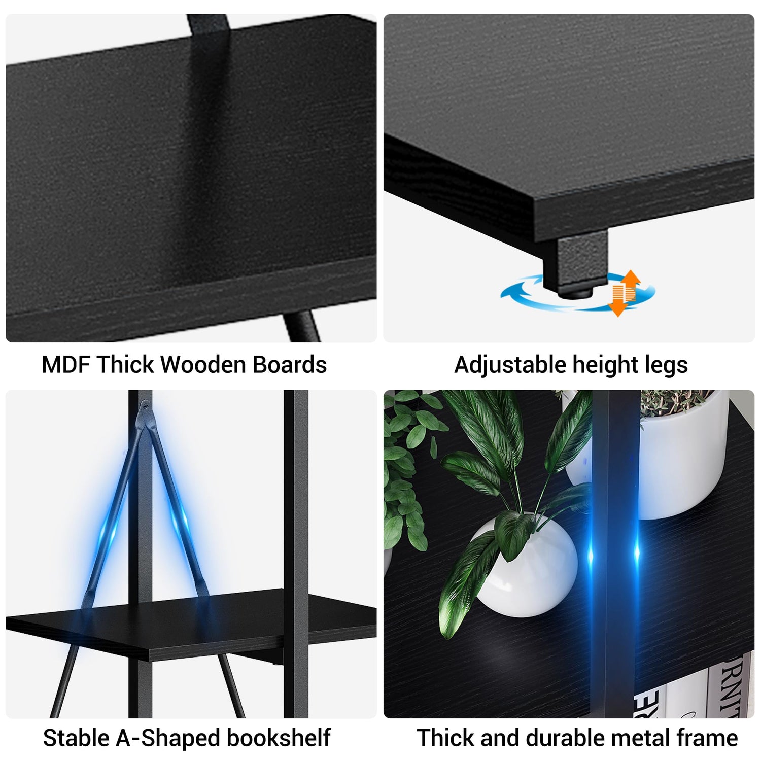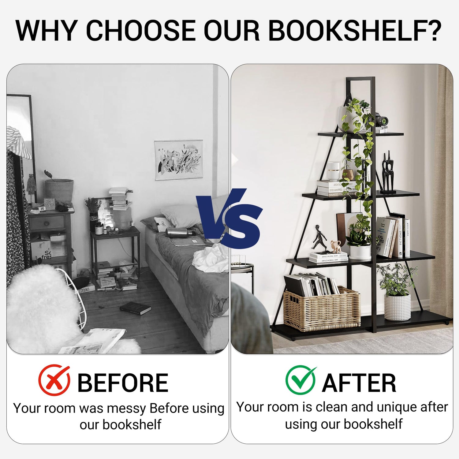 - 【Maximum Storage, Minimum Space】 With 4 spacious, open shelves, this black ladder shelf maximizes vertical storage. Perfect for books, knick-knacks, and family photos, it fits effortlessly into any room, regardless of size.