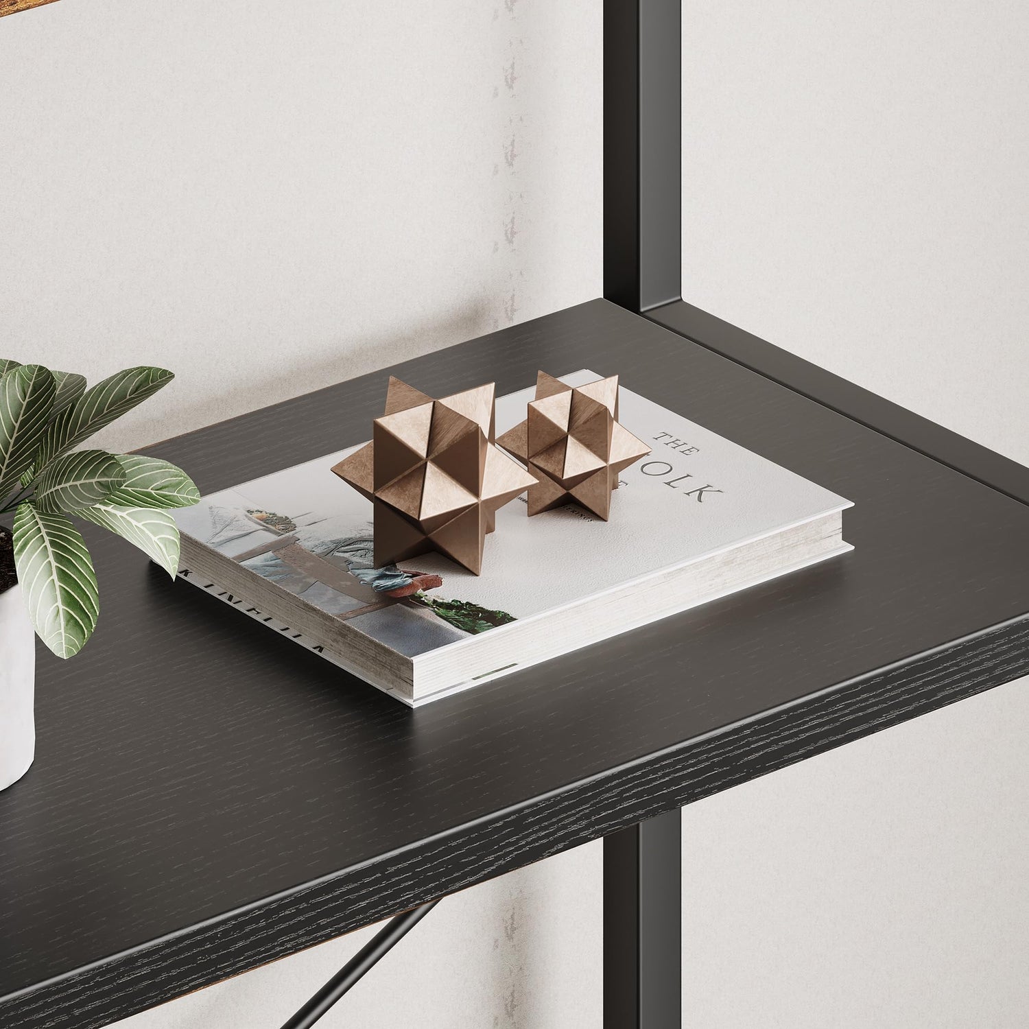 Versatile in its use, this black bookshelf serves multiple functions, acting not only as a bookshelf in your study but also as a display rack for collections in your living room, or even as a stylish storage solution for spices in the kitchen. Its design seamlessly integrates into various settings, including bedrooms, home offices, bathrooms, and balconies.