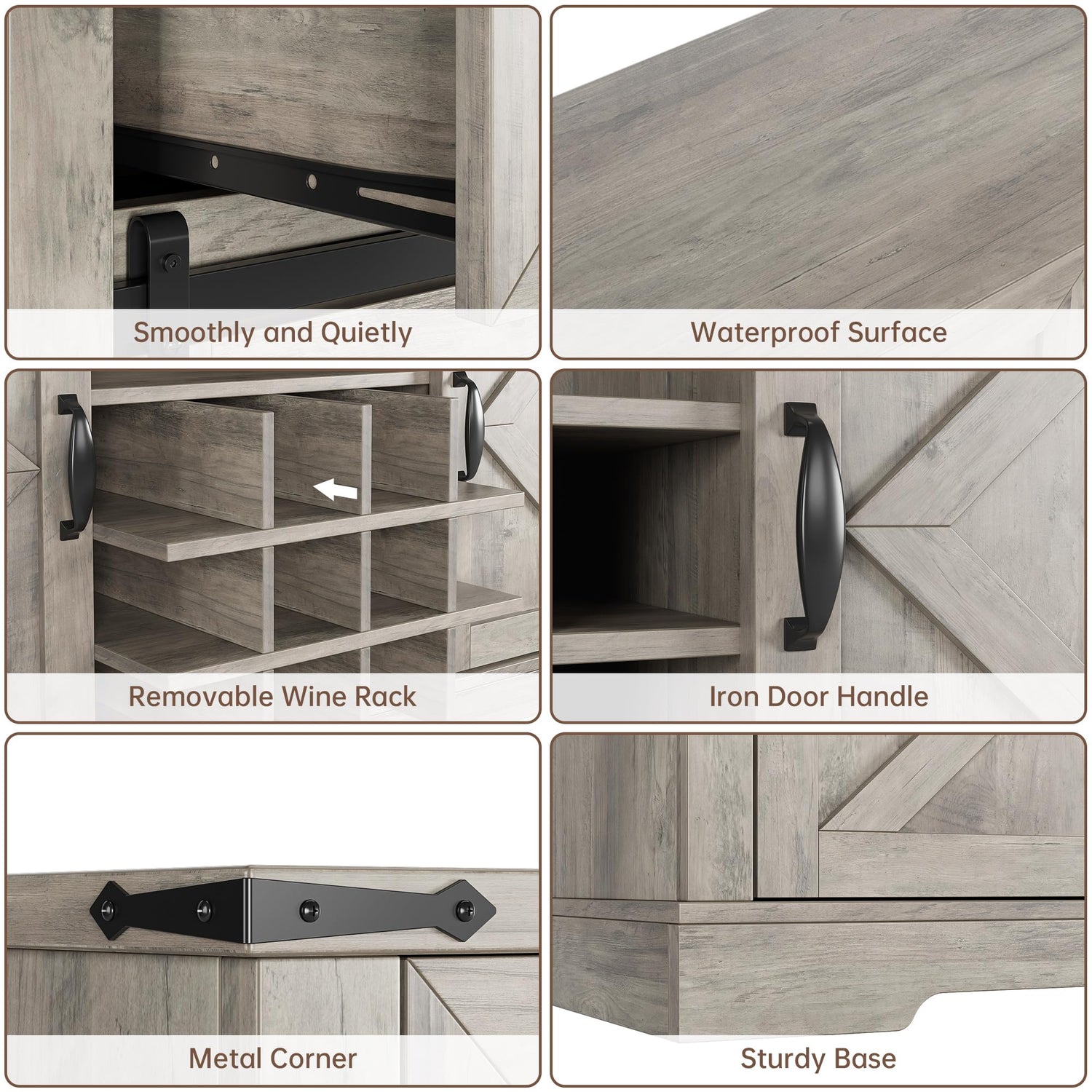 Farmhouse Buffe t Cabinet with Sliding Barn Door - Versatile Coffee Bar & Wine Storage in Washed Gray