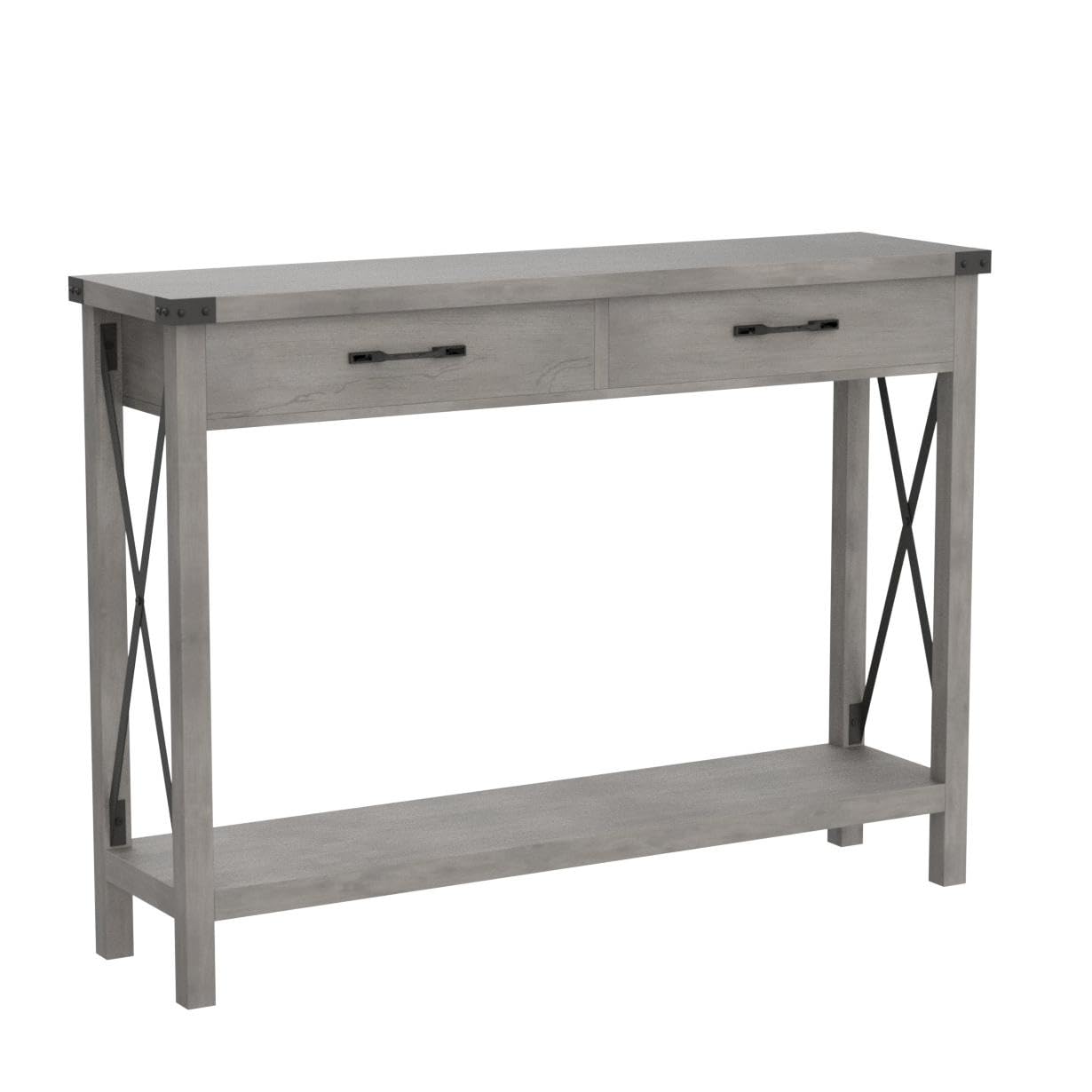 IDEALHOUSE Console Table with 2 Drawers, Farmhouse Entryway Table with Storage Shelf, Accent Wood Sofa Table for Living Room, Hallway, Foyer-Grey