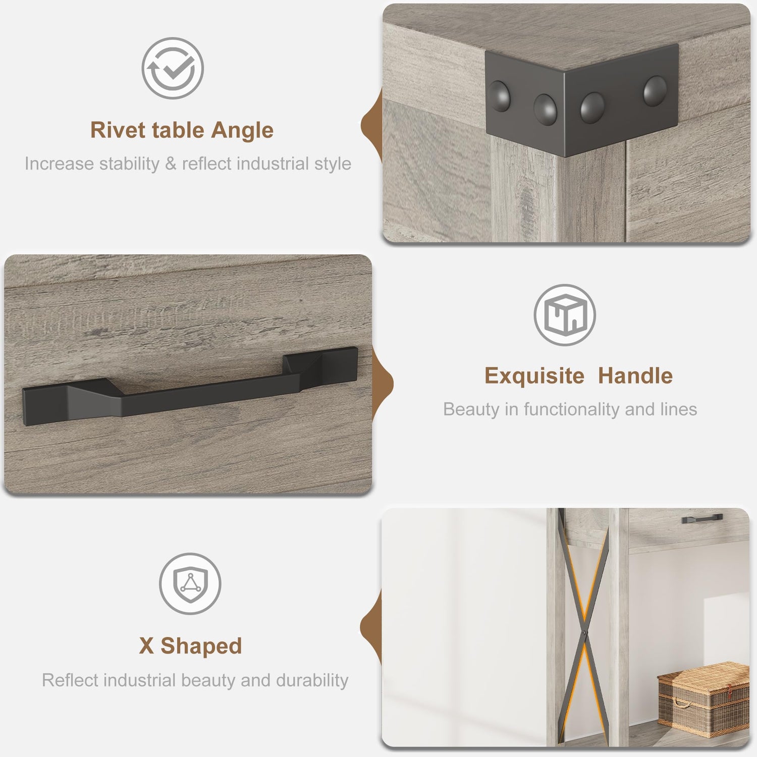 - Farmhouse Style: A combination of black wood grain and the metal frame of the rustic sofa table for living room is a timeless design. Rivets on the corners, retro handles on the drawers, and X-shaped structures on the sides surge with more elegance. A marriage of modern and classical design will look great with your home decor.