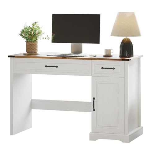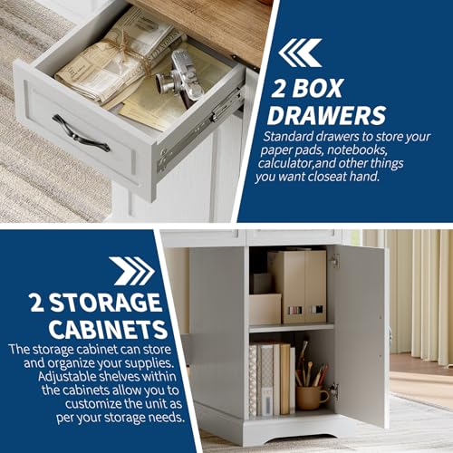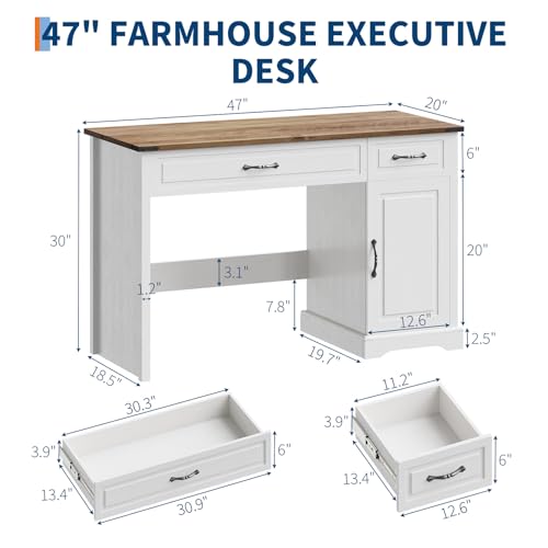 IDEALHOUSE Farmhouse 47" Executive Desk, Computer Desk with Drawers and Storage Cabinet, Home Office Desk for Work and Study, Rustic Workstation Computer Desks or Bedroom, Living Room, Antique White