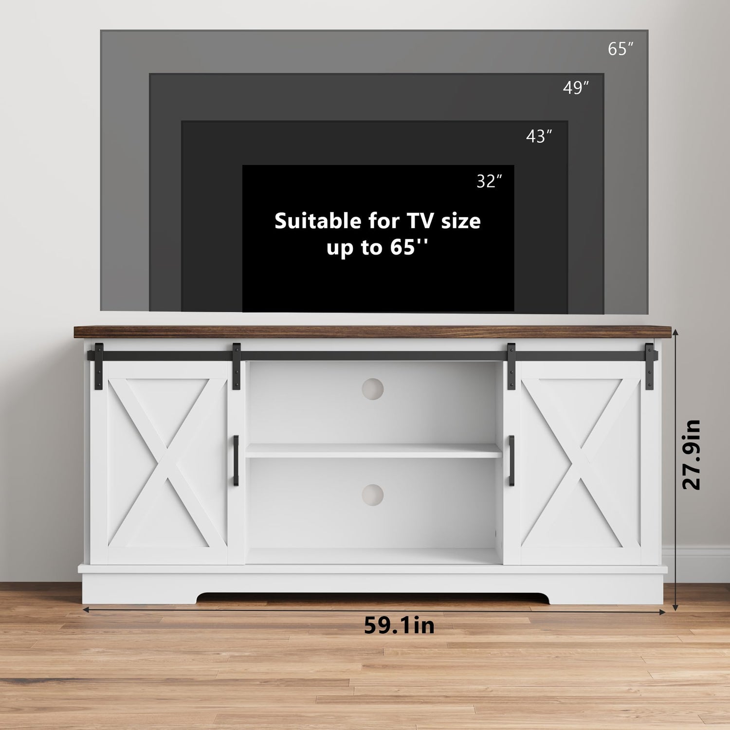 IDEALHOUSE Farmhouse Tv Stand for 65 Inch TVs, Entertainment Center with Sliding Barn Doors and Adjustable Shelf, Modern Storage Media TV Console TV Stand Table for Living Room, Bedroom, White