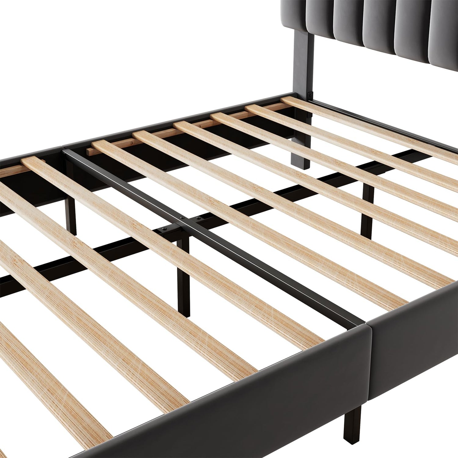 - 【Luxurious Velvet Upholstery】Crafted with plush velvet upholstery and a vertical stripe design, our bed frame not only offers a soft and cozy touch but also adds a touch of sophistication to your bedroom decor.