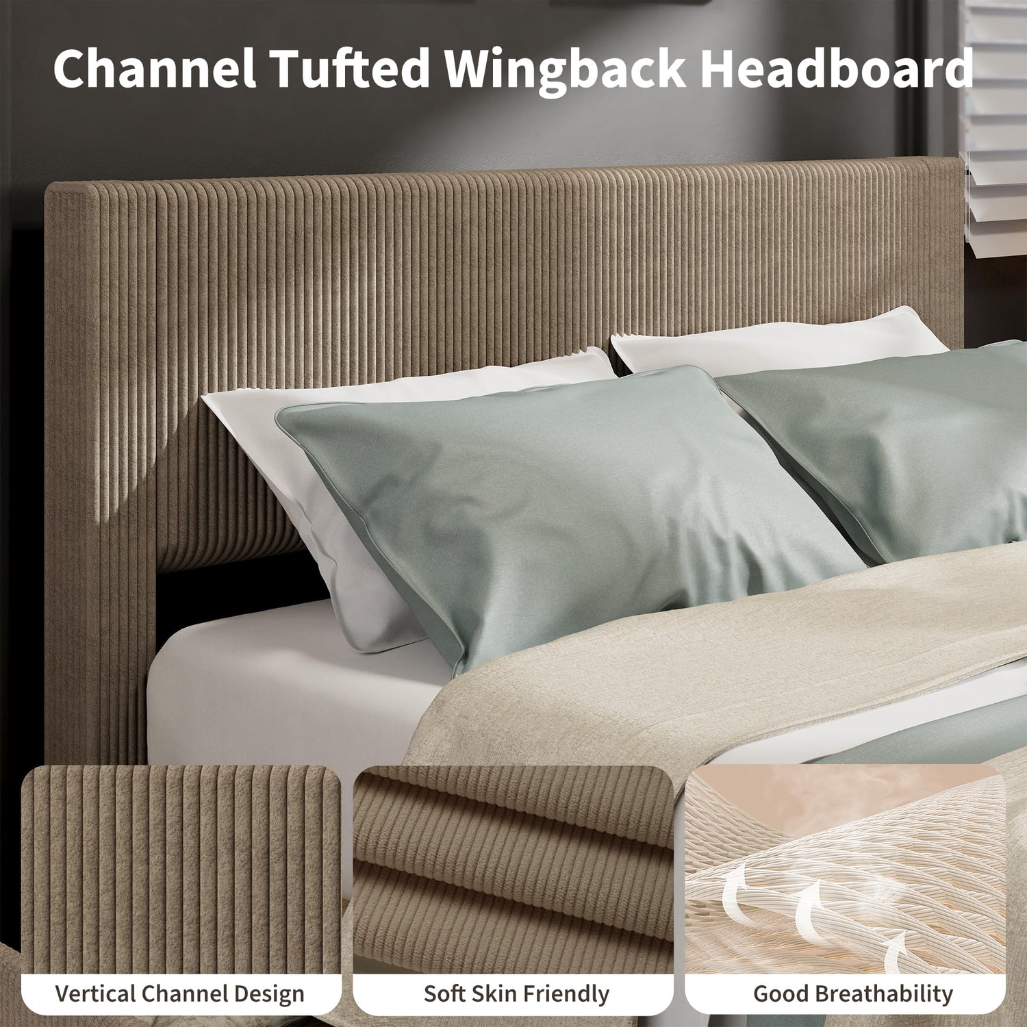 - 【Corduroy Bed Frame with Headboard】The bed frame full size with headboard is made of soft tufted material, giving you an unrivaled touch. The lightweight suede allows you to feel great comfort when reclining and creates a unique focal point for your bedroom