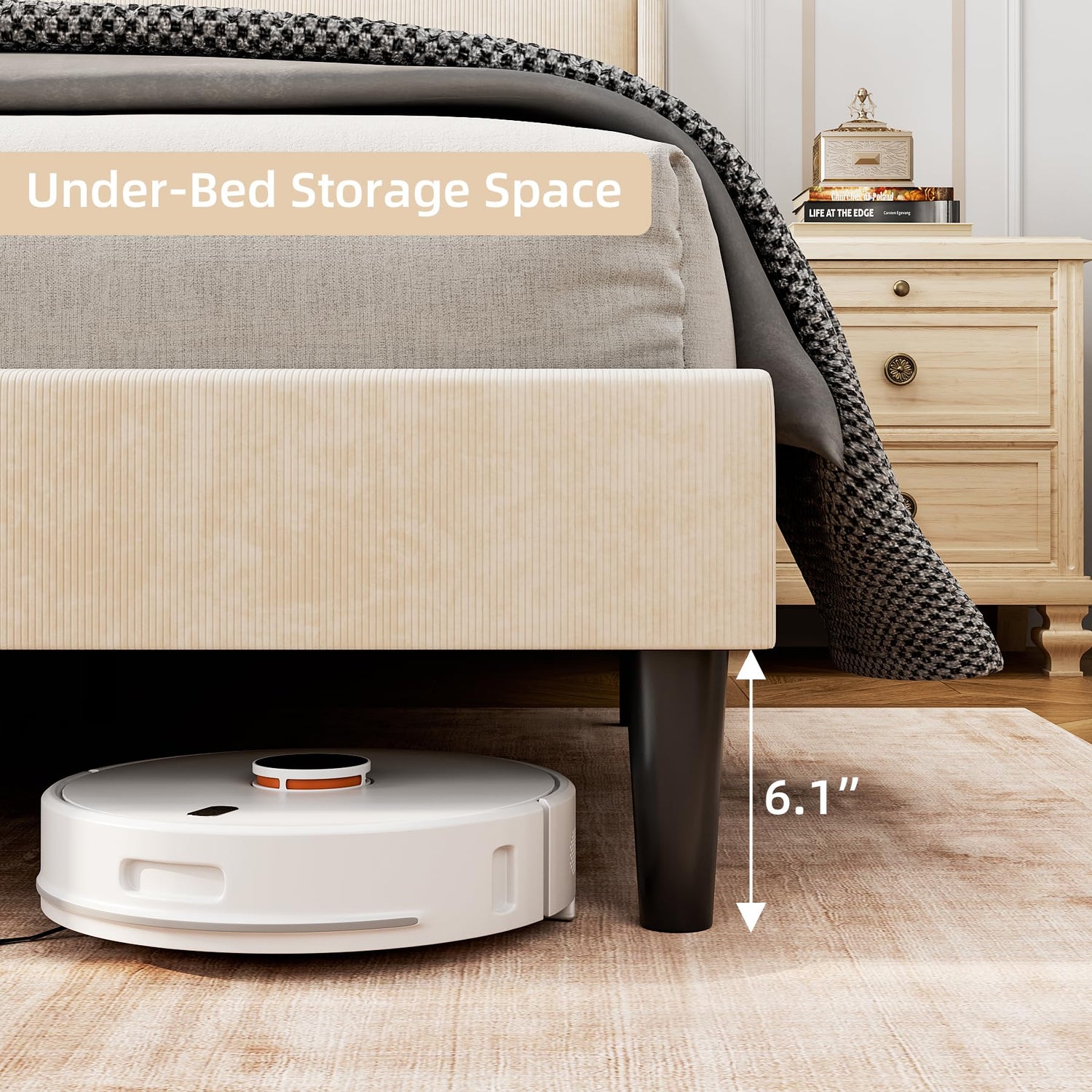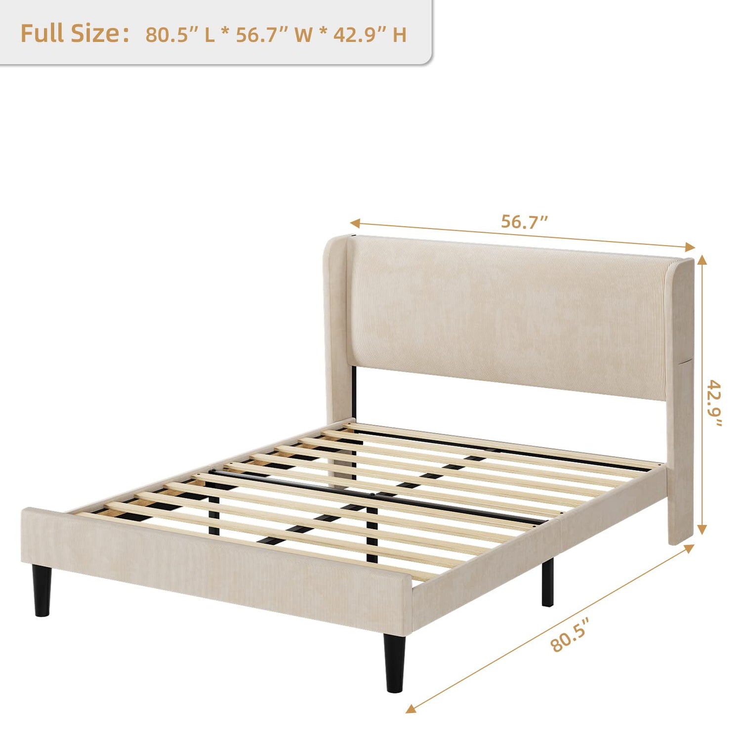 IDEALHOUSE Full Upholstered Bed Frame with Wingback Headboard, Luxurious Velvet Upholstery Platform Bed, Wooden Slat Support, and Easy Assembly - Box Spring Optional, Beige