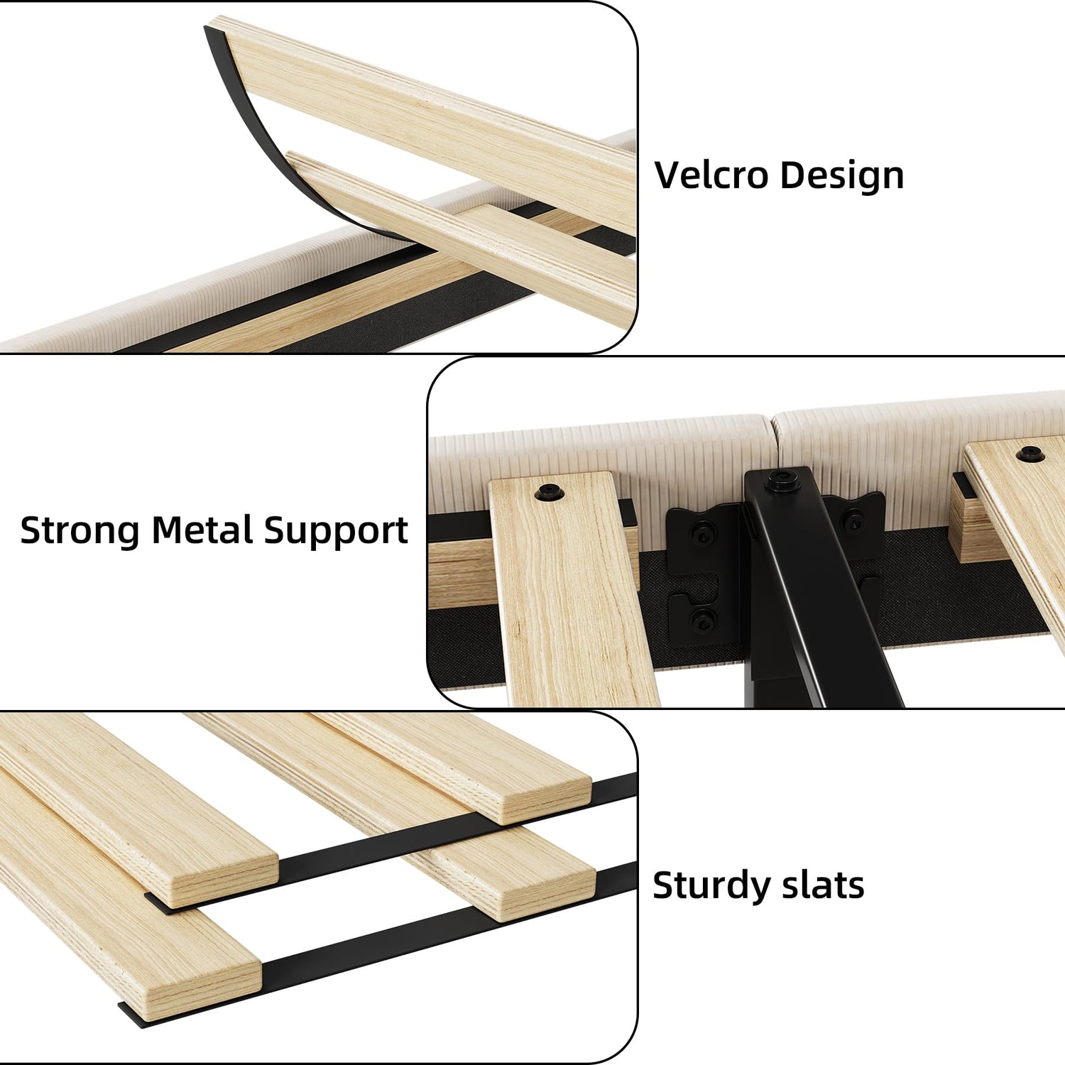 - Noise-Free Sleeping Experience: Featuring solid wood slats held in place by Velcro, accurately connected joints, and noise-reducing bars, The full platform bed ensures a quiet and comfortable sleep environment, free from any disruptions caused by creaking or friction.
