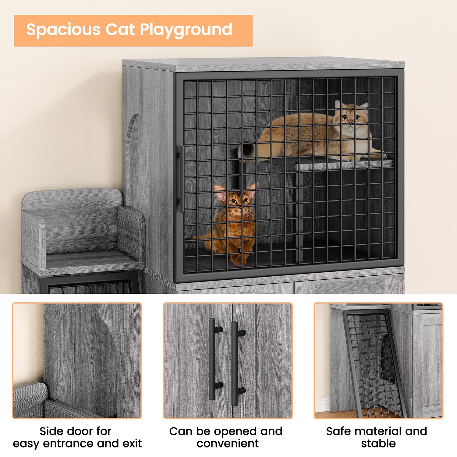 IDEALHOUSE Modern Cat Litter Box Enclosure with Platform, Double Layer Hidden Litter Box, Indoor Washroom, Villa Cat House with Ladder, 33.5" l x 17.9" w x 41.9" h,Dark Grey